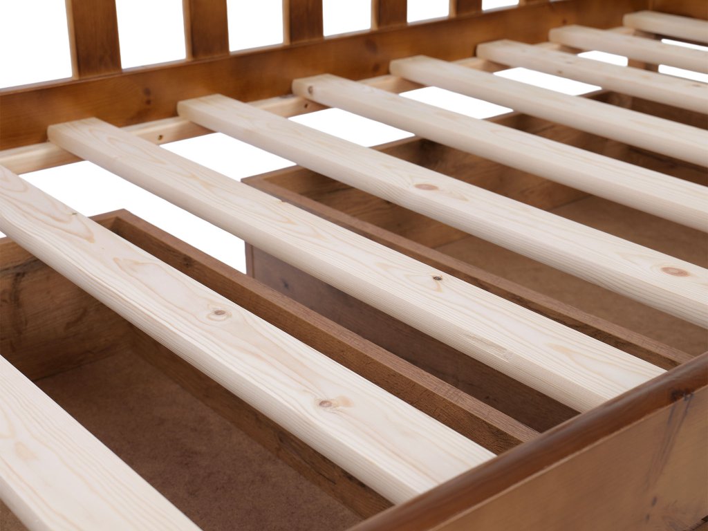 Az ágy részét képezi: az ágyrács, a tároló fiók és a leesésgátló.