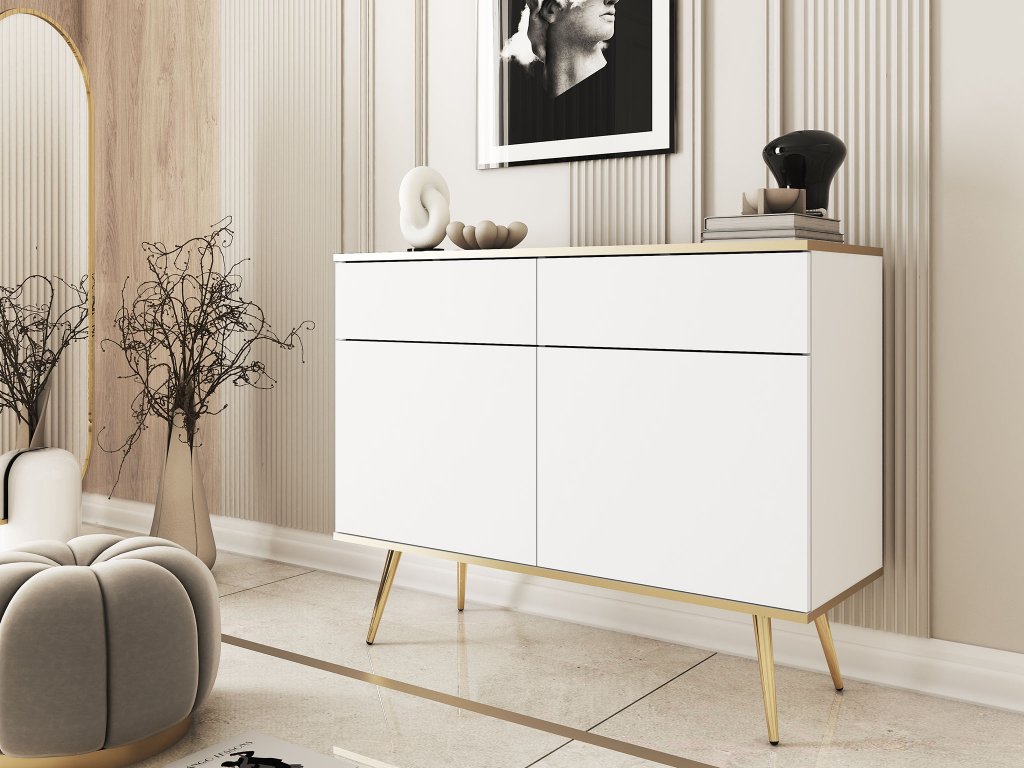 Gyönyörű fehér ORIQUE komód arany kiegészítőkkel