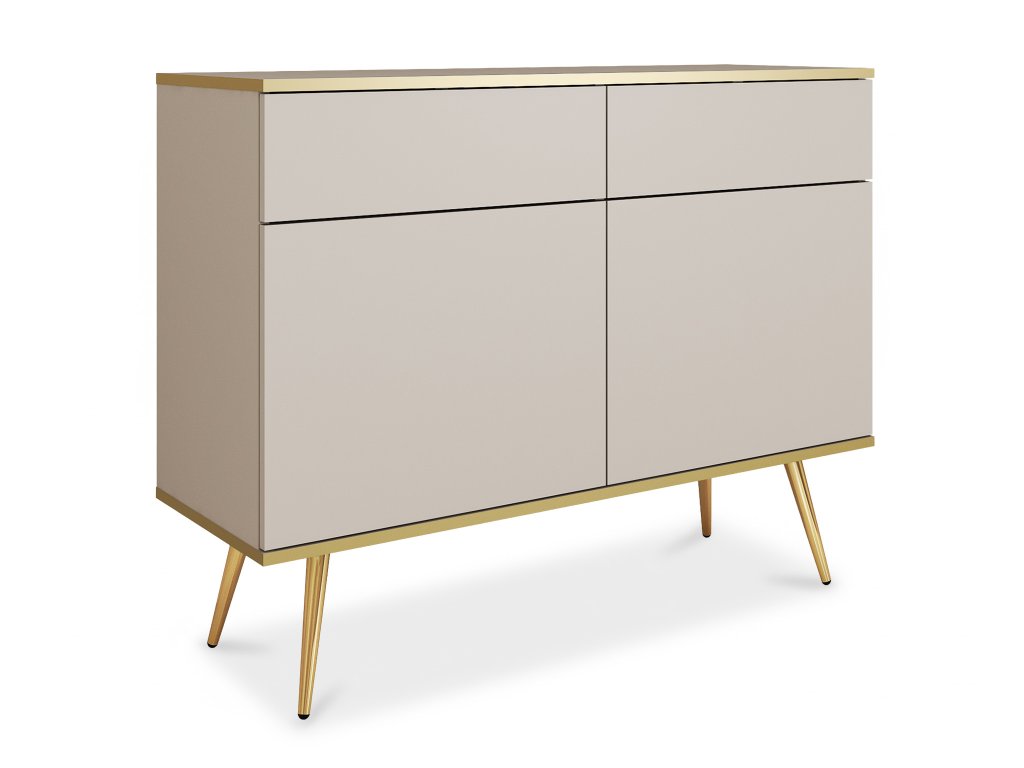 Az ORIQUE komód elegáns kasmír színben finom eleganciát, rendet és időtálló luxust visz a nappaliba. A modern komódot arany színű részletek egészítik ki, amelyek stílusos kontrasztot teremtenek, miközben az összhatás könnyed és légies marad, mégis stabil és praktikus. A sima felületek az arany színű fém lábak és a visszafogott vonalvezetés nemcsak funkcionális tárolóbútorrá, hanem hangsúlyos dizájnelemmé is teszik a komódot, amely egyaránt megállja a helyét a hálószobában, a nappaliban vagy az előszobában.