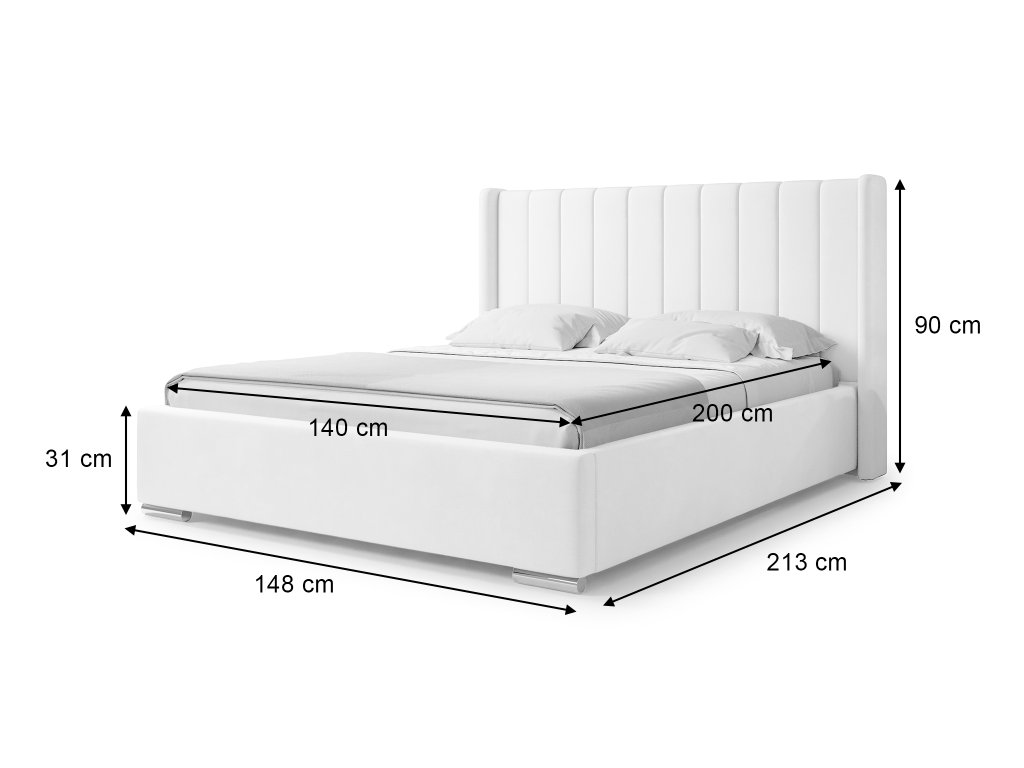 A Palmira ágy jellegzetes vonása a magas fejvég, amelyet függőleges varrás egészít ki, stílusos hatást keltve, és egyedi struktúrát adva az egész ágynak. A fejvég stabil támaszt nyújt ülés közben, így kényelmesen élvezheti az esti olvasást vagy pihenést. Az ágy erős szerkezete stabilitást biztosít hosszú távú használat során is. A modern megjelenést krómozott lábak egészítik ki, amelyek könnyed és ízléses megjelenést kölcsönöznek az ágynak. A Palmira így kiváló választás mindazok számára, akik a modern dizájn, a praktikus funkciók és a magas kényelem kombinációját keresik.