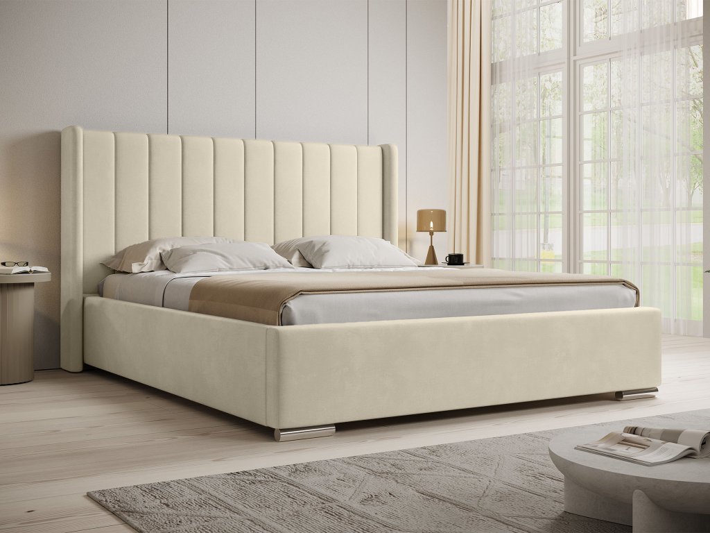 PALMIRA kárpitozott franciaágy ágyneműtartóval 180x200 - krémszín