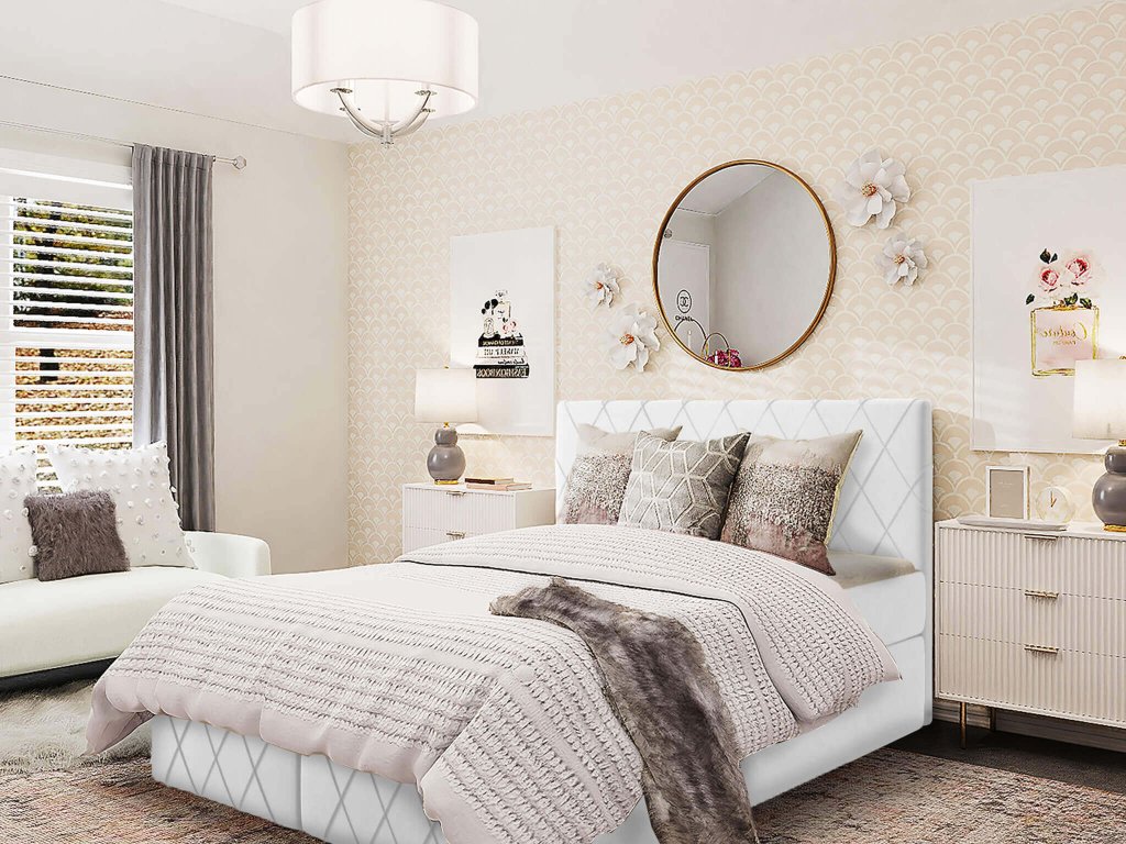 PAROS Lux kárpitozott boxspring ágy fedőmatraccal - fehér Paros