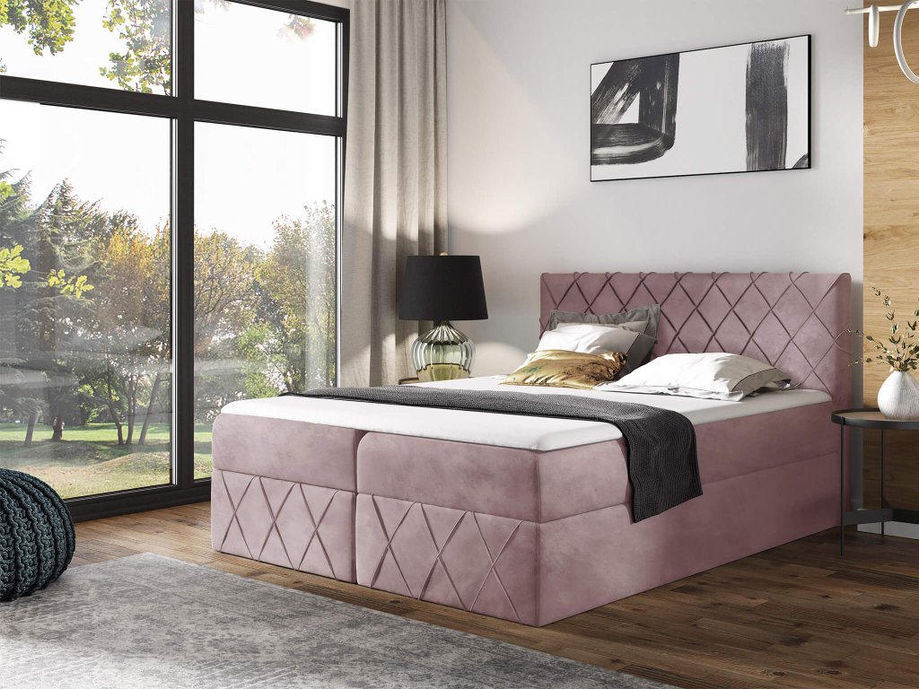 PAROS Lux kárpitozott boxspring ágy fedőmatraccal - rózsaszín Kronos