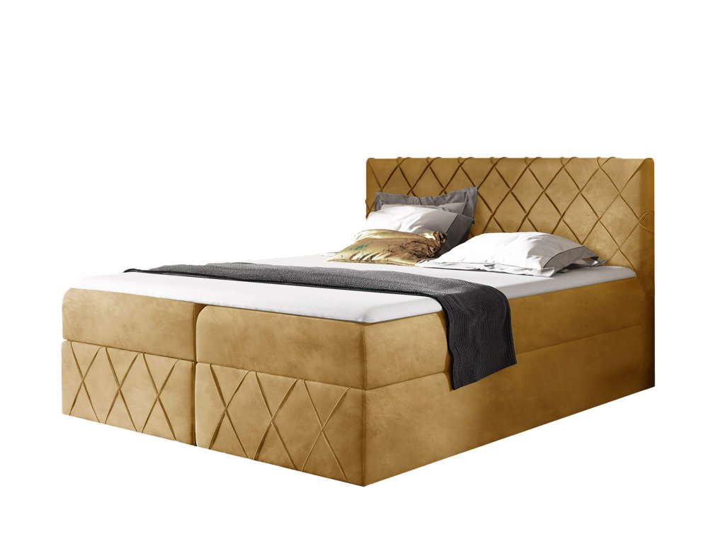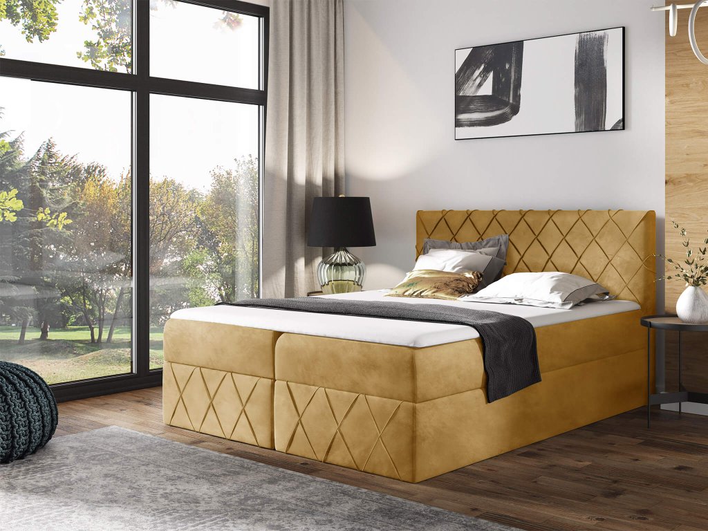 PAROS Lux kárpitozott boxspring ágy fedőmatraccal - sárga Kronos