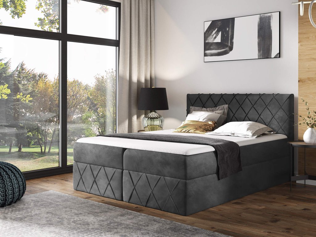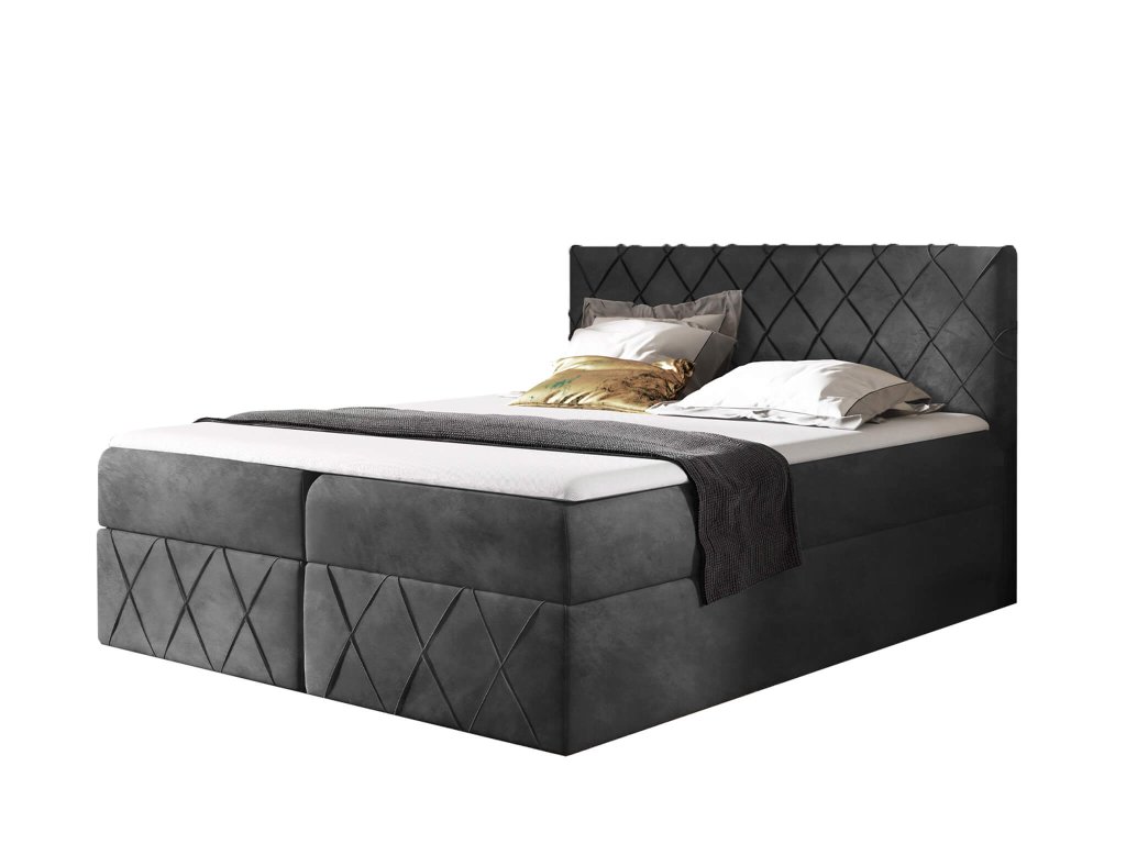 PAROS Lux kárpitozott boxspring ágy fedőmatraccal - sötétszürke Kronos
