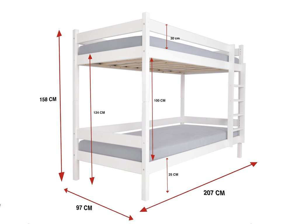 - A padló és az alsó fekhely ágyrácsa közötti távolság: 25 cm