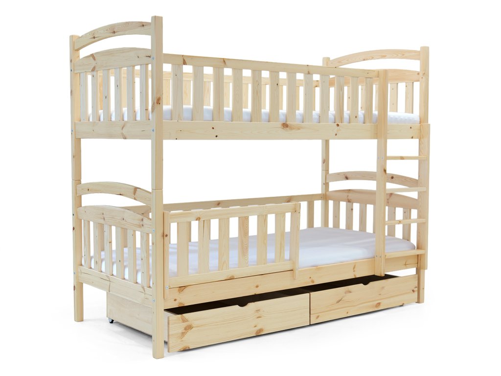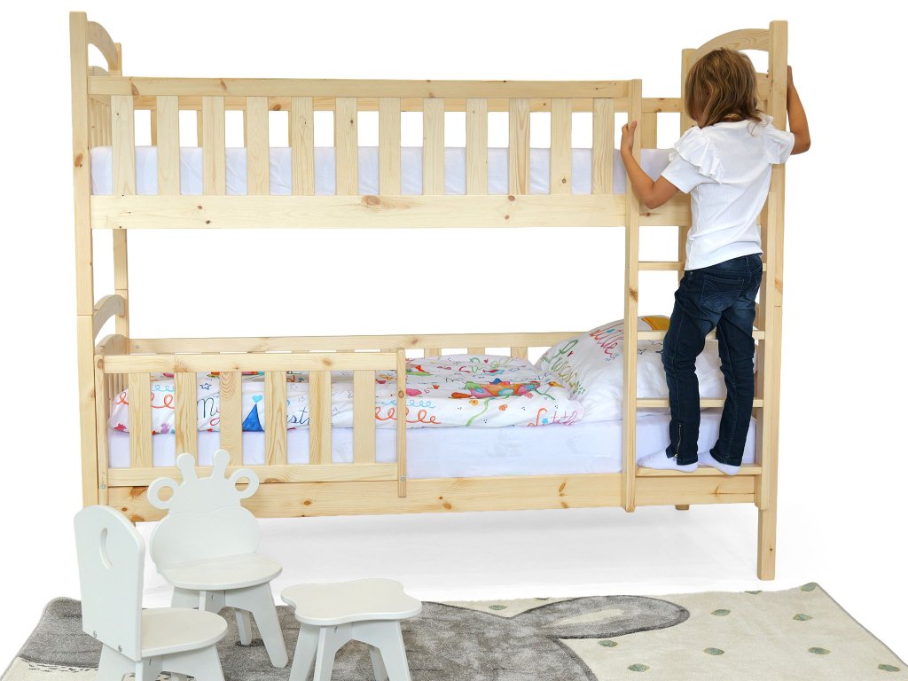 Minőségi és praktikus Paula 7 emeletes ágy ágyneműtartóval tömör fából natúr borovi színben. Az emeletes ágy 3x van lakkozva természetre nem ártalmas ökológiai lakkal. Az ágy könnyen szétszedhető két különálló fekhelyre. Az ágy két ágyneműtartó fiókkal rendelkezik, amelyek műanyag kerekeken mozognak, hogy ne sértsék meg a padlót. Nincsenek az ágyhoz rögzítve, így könnyen mozgathatók. Az ágy leesésgátlóval együtt kapható. A létra fokai szélesek, így megkönnyítve gyermekének a felmászást. Az ágy univerzális, tehát kétoldalas. Szerelés előtt döntheti el, hogy jobb vagy bal oldalra szeretné szerelni a létrát.