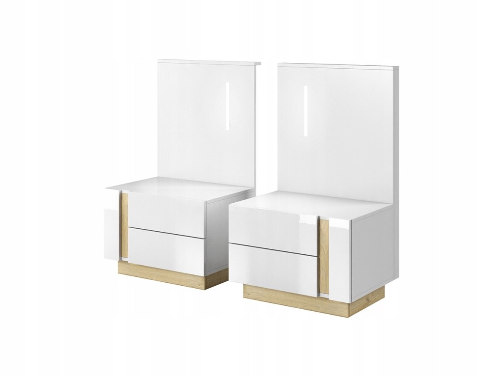 A Penny éjjeliszekrények led világítással rendelkeznek és két praktikus fiókbál állnak. A felső deszka rakodó felületként apróságokra mint fényképek, ébresztőóra, dekor tárgyak is felhasználható.