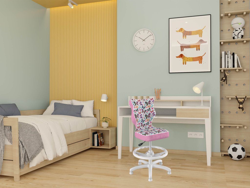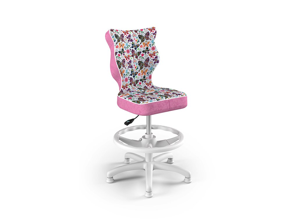 A gyerekeink nagyon sok időt töltenek az iskolapadban vagy az íróasztaluknál. Ezért nagyon fontos, hogy legyen egy kényelmes és minőségi székük. Ez a szék biztosítja a megfelelő testtartást. A Petit fehér - rózsaszín kombinációban készült forgószék szép lepke mintával diszített, amely nagyon jó választást jelent, ugyanis ergonomikusan formázott. Ennek köszönhetően a gyerekek medencéje a megfelelő helyzetbe kerül, amely elengedhetetlen a hátgerinc felső szegmenseinek megfelelő helyzetéhez. A Petit szék váza műanyagból és üvegszálakból készül. A szerkezet rendelkezik egy gázlifttel is, melynek köszönhetően állítható a magassága. A szék részét képezi egy praktikus kör alakú lábtartó is. A székhez tartozó puha kerekek lehetővé teszik, hogy a forgószék könnyen mozgatható legyen bármilyen felületen, akár a szőnyegen is. Ezt a típusú gyerekszéket egy ortopédiai, ergonómiai, biomechanikai és fizioterápiai szakértőkből álló csoport fejlesztette ki. Hozzon létre gyermekének egy helyet, ahol kényelmesen tanulhat, rajzolhat vagy kreatív tevékénységeket folytathat a Petit ergonomikus gyerek forgószéknek köszönhetően.