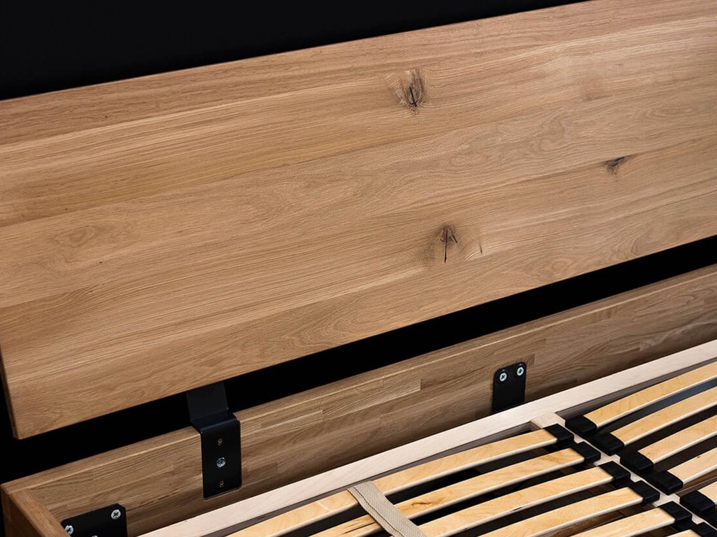 A tölgyfa a természetes szépségével és eleganciájával tűnik ki. Az egyedi textúrája és a mély színei melegséget visznek a hálószobába. A tölgyfából készült ágy stílusosan néz ki minden hálószobában és a luxus érzetét kelti. A minőségi tömör fa ágy megbízható társa lesz majd évekig. Az ágy fekete fém konzolokkal is rendelkezik, amelyek az ágytámlát tartják. A magas háttámlának köszönhetően az ágy igazán elegáns designt kap. Ezen kívül igazán praktikus is tévénézés vagy olvasás közben. A megfelelő kidolgozottságának és leápolásának köszönhetően pedig a franciaágy még évekig megőrzi majd a szépségét és a minőségét.Ehhez az ágyhoz ezt a konkrét ágyrácsot szükséges megvásárolni: lamellás ágyrács 140x200