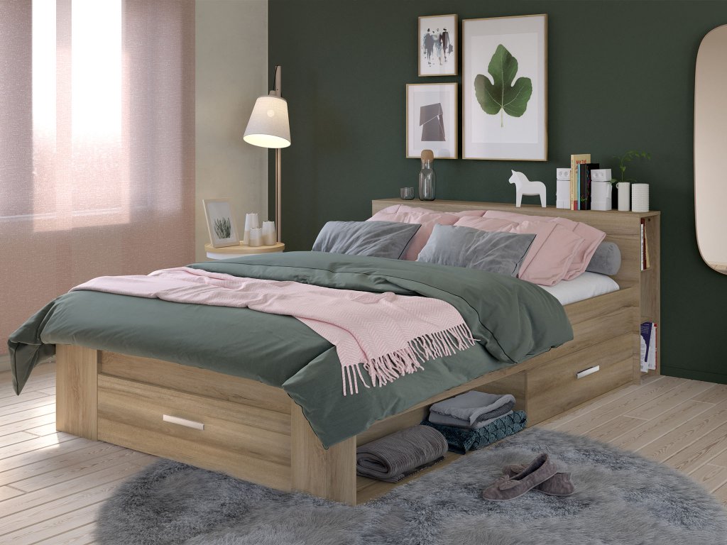 POCKET ágyneműtartós franciaágy 140x200 - tölgy