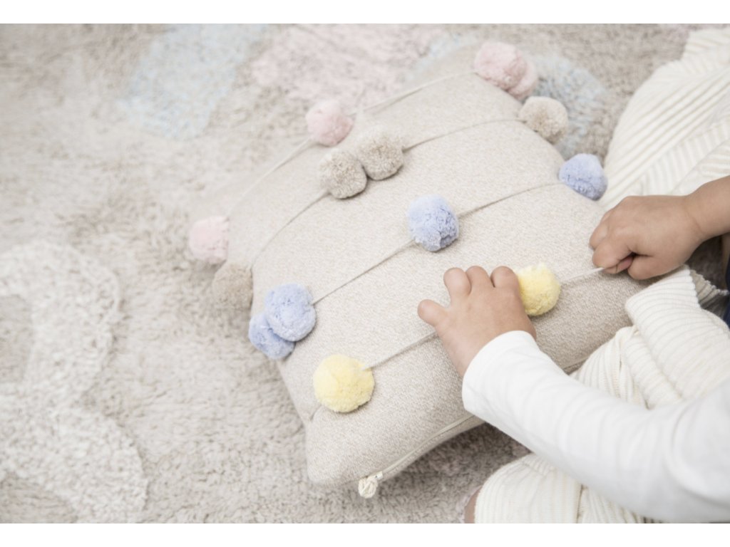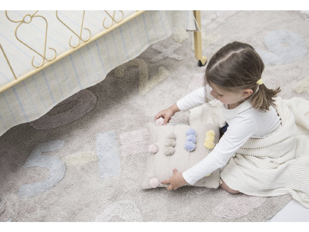A kézzel készült spanyol Lorena Canals márka párnája, nem csak nagyon mutatós, de segíti is gyermekét a számolás könnyebb elsajátításában. A párnán található aranyos pompom-ok mozgathatók, úgy mint a valódi számológépen lévő golyók. A számolni tanulás egyben szórakozás is lesz ezzel a párnával. Könnyen tisztítható, mivel mosógépben is mosható.