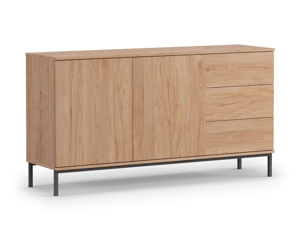 A gyönyörű és különleges hikora tölgy színváltozatban készült Querty komód ideális választás mindazok számára, akik egy stílusos és praktikus belső tér berendezésén fáradoznak. A komód megalkotásakor nagy hangsúlyt fektettek a minőségre és a designra. A modern komód igazán gyönyörűen mutat minden otthonban. Könnyen beillik majd a skandináv és a minimalista stílusú otthonokba is. A belső elrendezése is igen praktikus. A jobb oldalon található három fióknak köszönhetően elég helye lesz az iratainak és egyéb apróbb tárgyainak. A bal oldalon a kétajtós szekrényben egy-egy polcot helyeztek el. Ezek tökéletes helyet biztosítanak a könyveknek vagy a ruháknak. Ráadásul a tetejére is elhelyeheti dísztárgyait, szobanövényeit vagy a családi fényképeket.