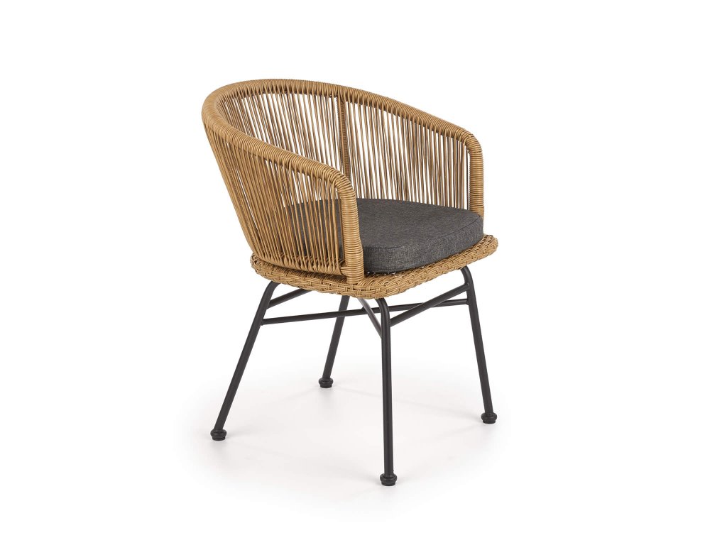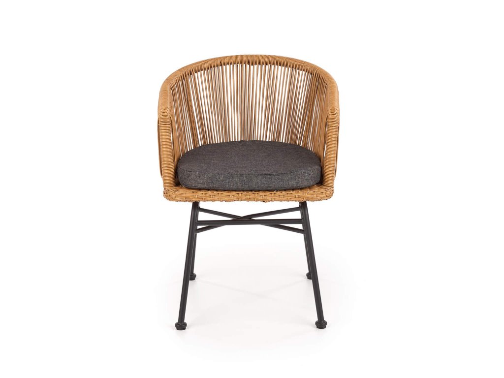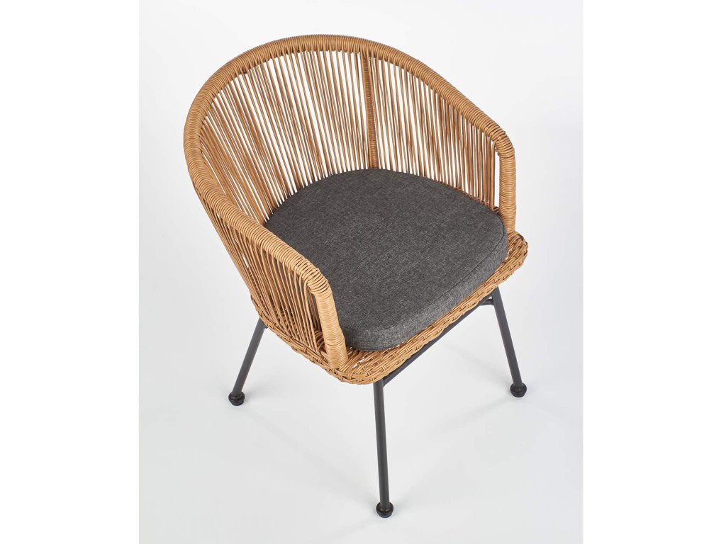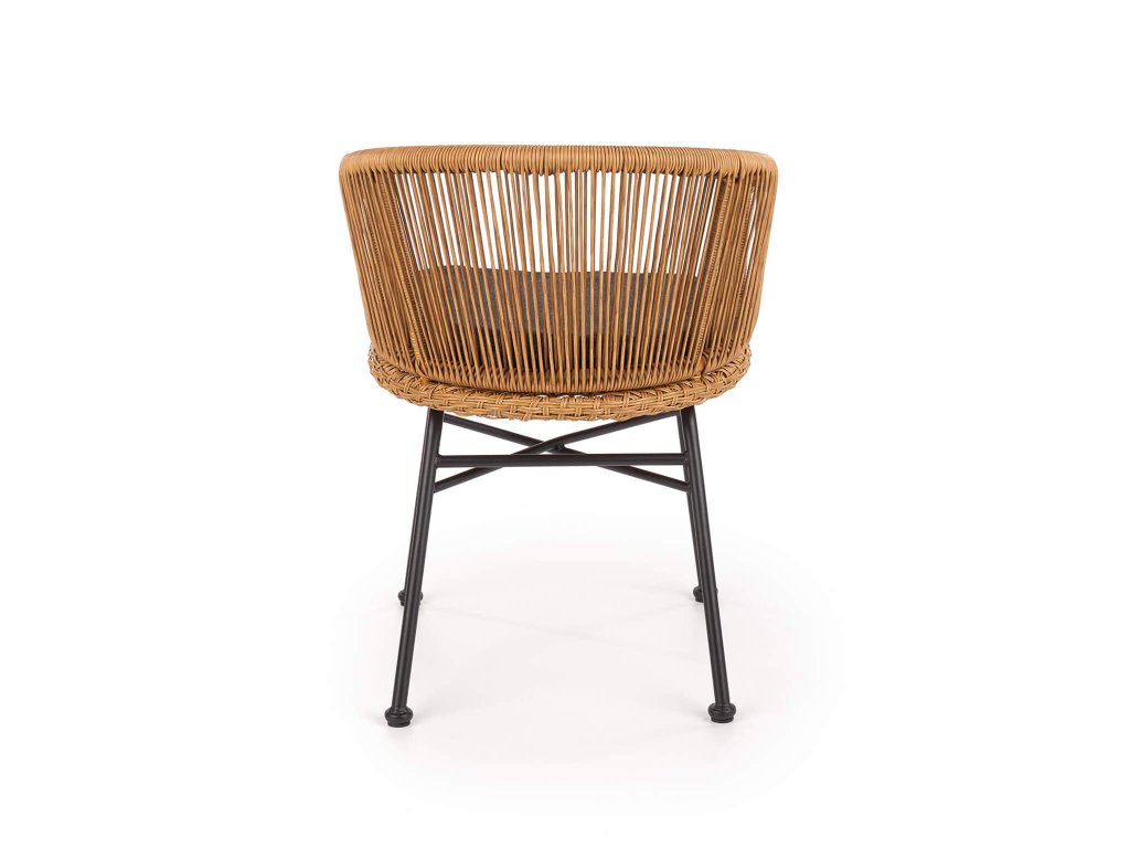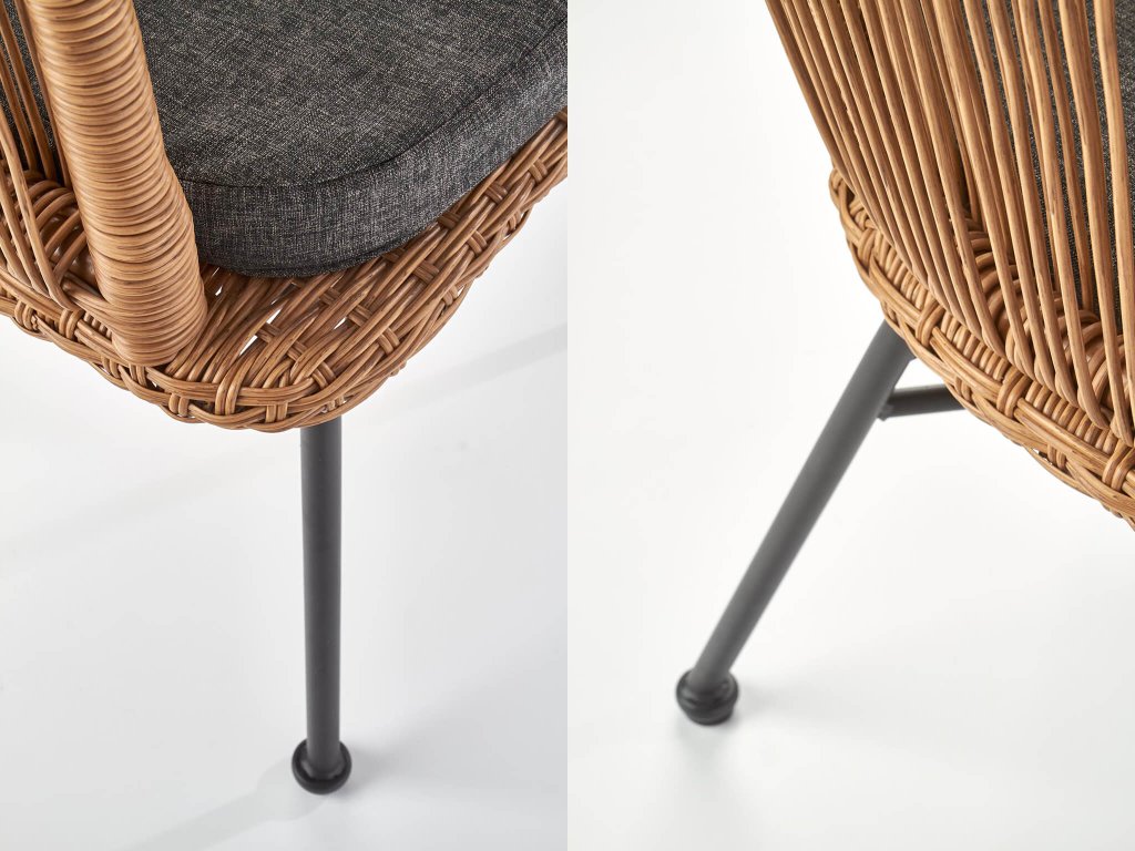 Modern és kényelmes K400 kerti rattan fotel puha párnával, amelyet elhelyezhet a téli kertbe, a teraszra vagy az erkélyre. Azonban az érkezőben, a konyhában vagy a pavilonban is megállja a helyét. Az originális designjának és a kifinomult kinézetének köszönhetően mindenkit levesz a lábáról ez a boho stílusú fotel. A kültérben és a beltérben is tökéletesen megállja a helyét, továbbá a rusztikus és a skandináv stílusú bútorokkal is könnyen kombinálható. Élvezze a családdal és a barátokkal töltött időt a szabadban ennek a kényelmes fotelnak a segítségével. A fotel szintetikus rattanból készül, amely kinti használatra is tökéletes. A fekete fém szerkezet nagyon stabil és biztonságos. A fotel lábain egy kerek talapzat található, amely megvédi a padlót a karcolásoktól.