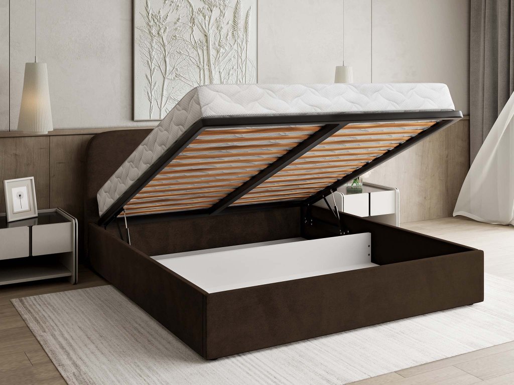 RENIVE K kárpitozott franciaágy ágyneműtartóval 140x200 - barna