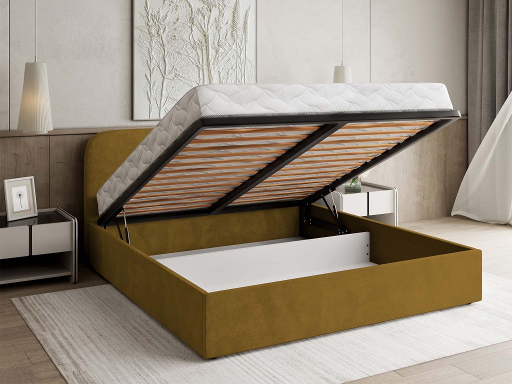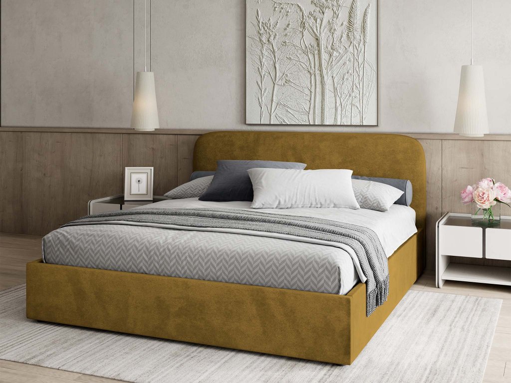 RENIVE K kárpitozott franciaágy ágyneműtartóval 160x200 - mustársárga