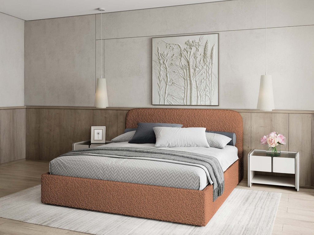 RENIVE Q kárpitozott ágyneműtartós franciaágy 140x200 - téglavörös