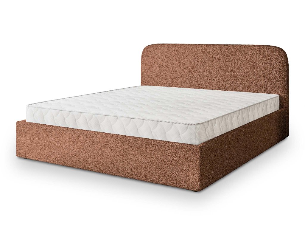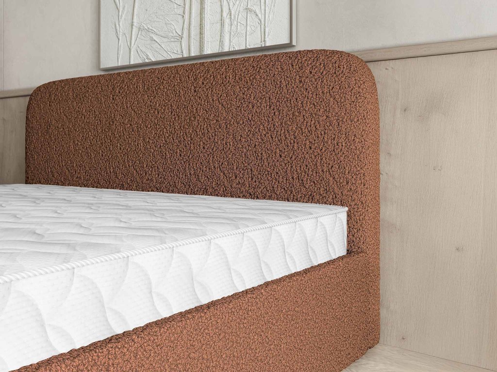 A Quelle anyagból készült kárpitozás nemcsak funkcionális, hanem dizájn szempontjából is vonzó elemmé teszi az ágyat. Jellegzetes buklé struktúrája puha és légies hatást kelt, míg a téglavörös szín otthonos hangulatot kölcsönöz a hálószobának. Az anyag kellemes tapintású, kopásálló és hosszú távon megőrzi báját. Ennek köszönhetően biztos lehet benne, hogy az ágy hosszú évek mindennapos használata után is ugyanolyan szép és kényelmes marad.