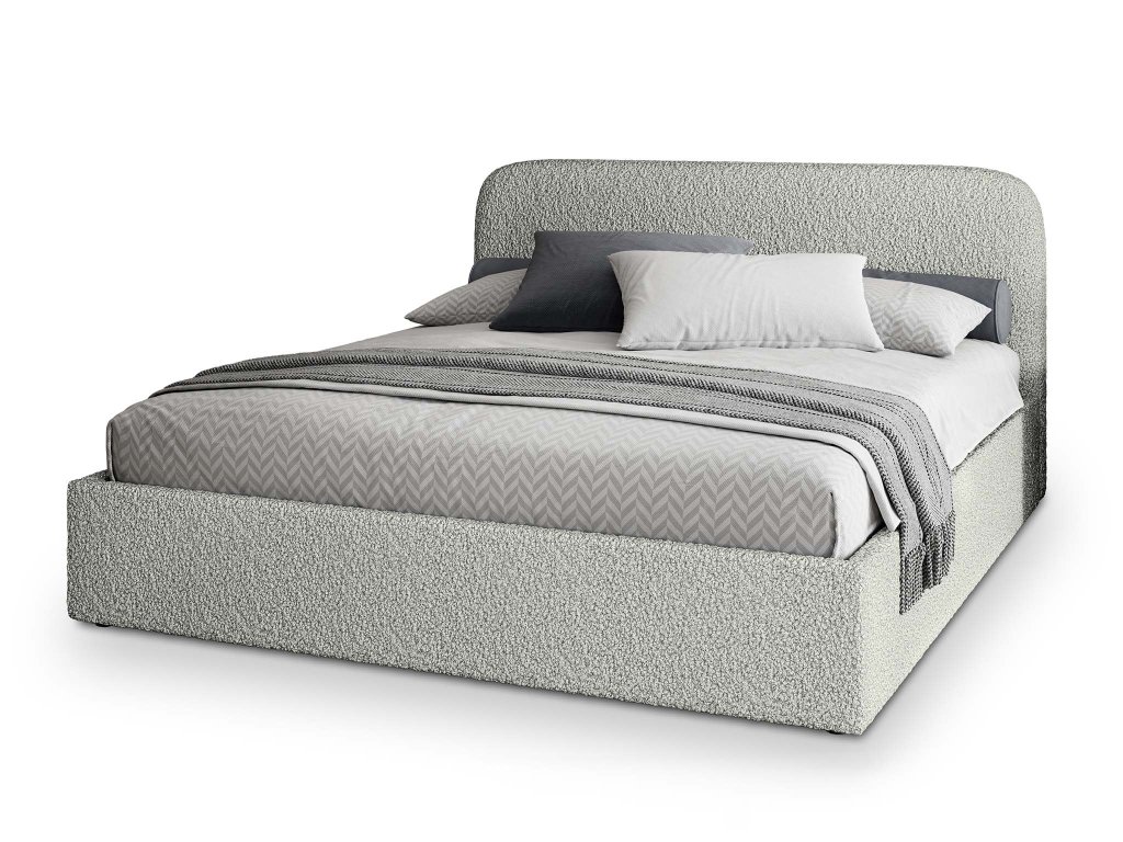 A kárpitozás prémium Quelle szövetből készült, amely egyedi buklé struktúrával rendelkezik, amely a „báránykára” emlékeztet. A világosszürke változat modern, légies hatást kelt, és könnyedséget kölcsönöz a hálószobának. Ez az anyag nemcsak vizuálisan vonzó – a finom és bolyhos felületének köszönhetően nagyon kellemes tapintású is. Ezenkívül magas kopásállósággal rendelkezik, így intenzív használat után is megőrzi szép megjelenését. A Renive Q franciaágy így egyesíti a funkcionalitást, a dizájnt és a kényelmet egy harmonikus egésszé.