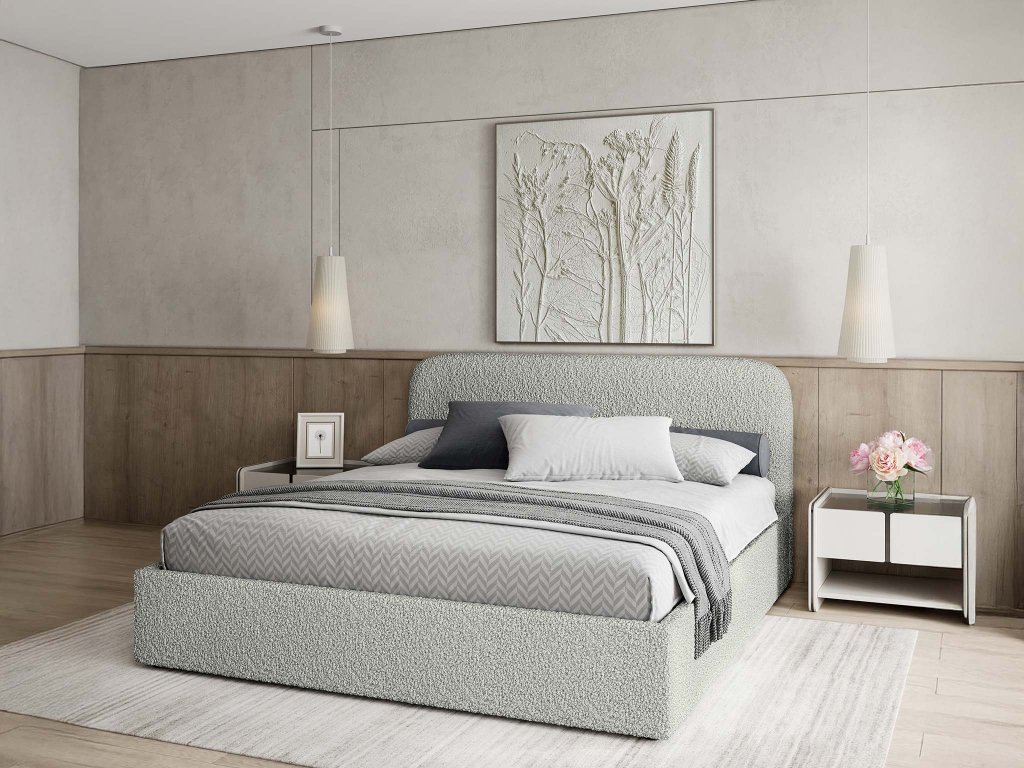 RENIVE Q kárpitozott ágyneműtartós franciaágy 160x200 - világosszürke