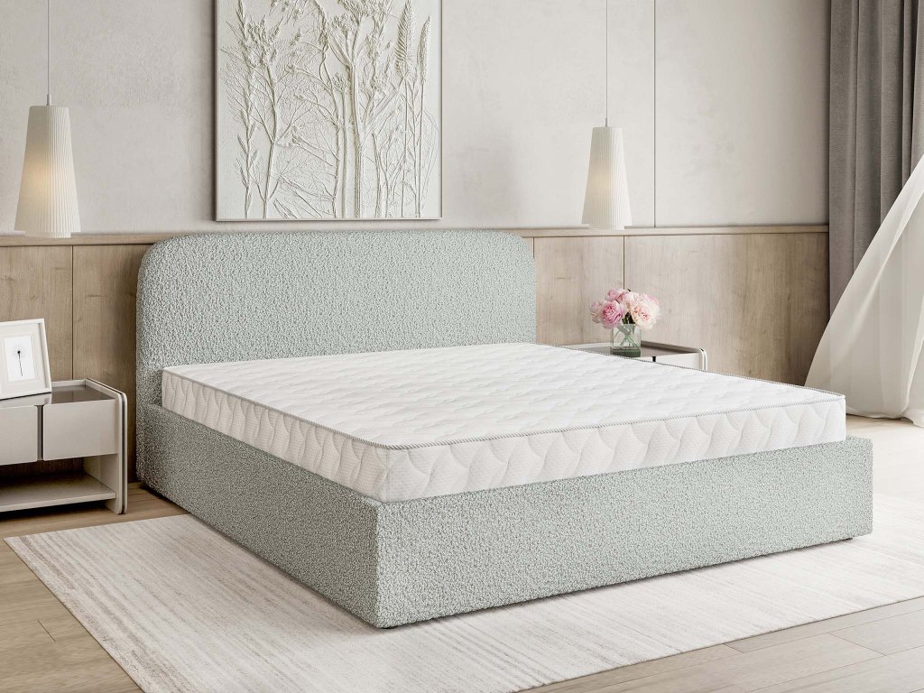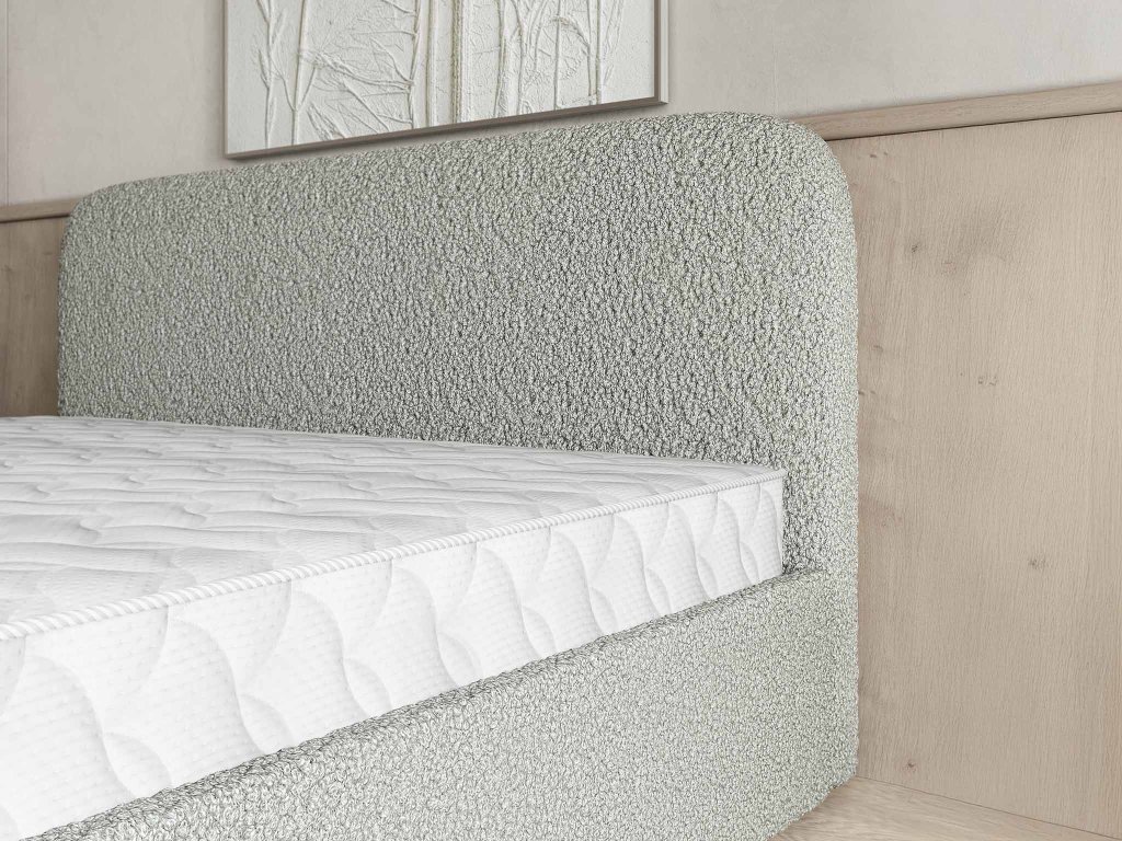 A hagyományos anyagokkal ellentétben a Quelle kivételes buklé „báránybőr” felületet kínál, amely tapintásra puha és optikailag vonzó. A világosszürke árnyalatban friss és univerzális hatást kelt, ami lehetővé teszi, hogy könnyen kombinálható legyen más bútorokkal és dekorációkkal. Az anyag magas kopásállósága garantálja, hogy az ágy évek múltán sem veszít szépségéből. Az eredmény a modern megjelenés és a praktikus tulajdonságok ötvözete, amely maximális kényelmet és esztétikai élvezetet nyújt.