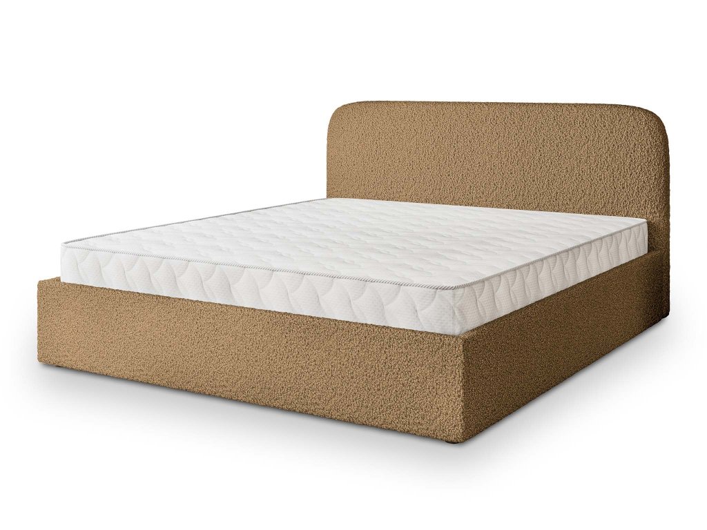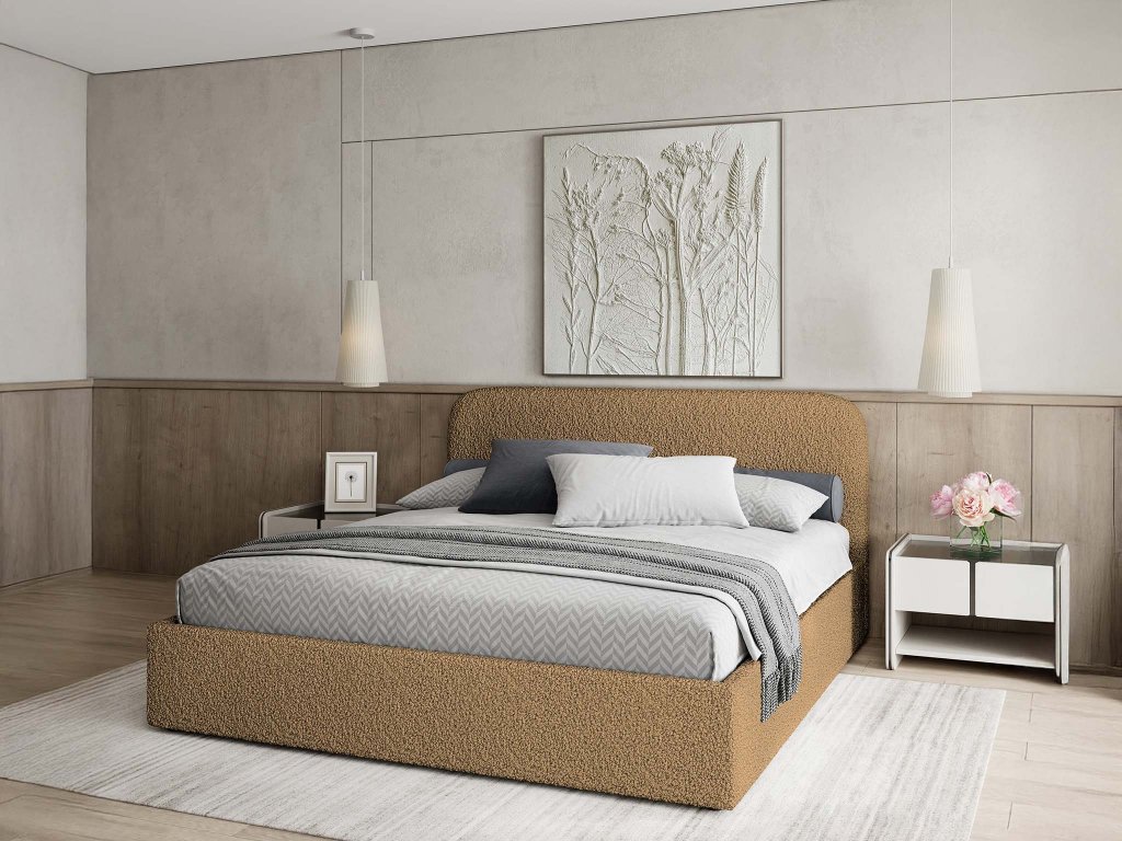Exkluzív Quelle szövet, amely egyedi buklé „bárány” struktúrával rendelkezik. A barna árnyalat meleg karaktert kölcsönöz neki, és hozzájárul az otthon kellemes légkörének megteremtéséhez. A textília kellemes tapintású, ugyanakkor tartós és alkalmas mindennapi használatra. A barna színű Renive Q ágy így ötvözi a praktikusságot az eleganciával, és a hálószobája központjává válik. Világos vagy természetes fával kombinálva harmonikus, nyugodt belső teret hoz létre.