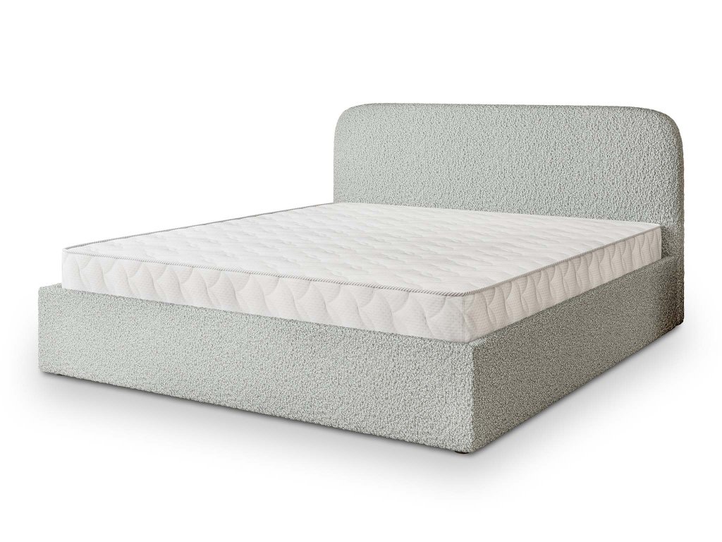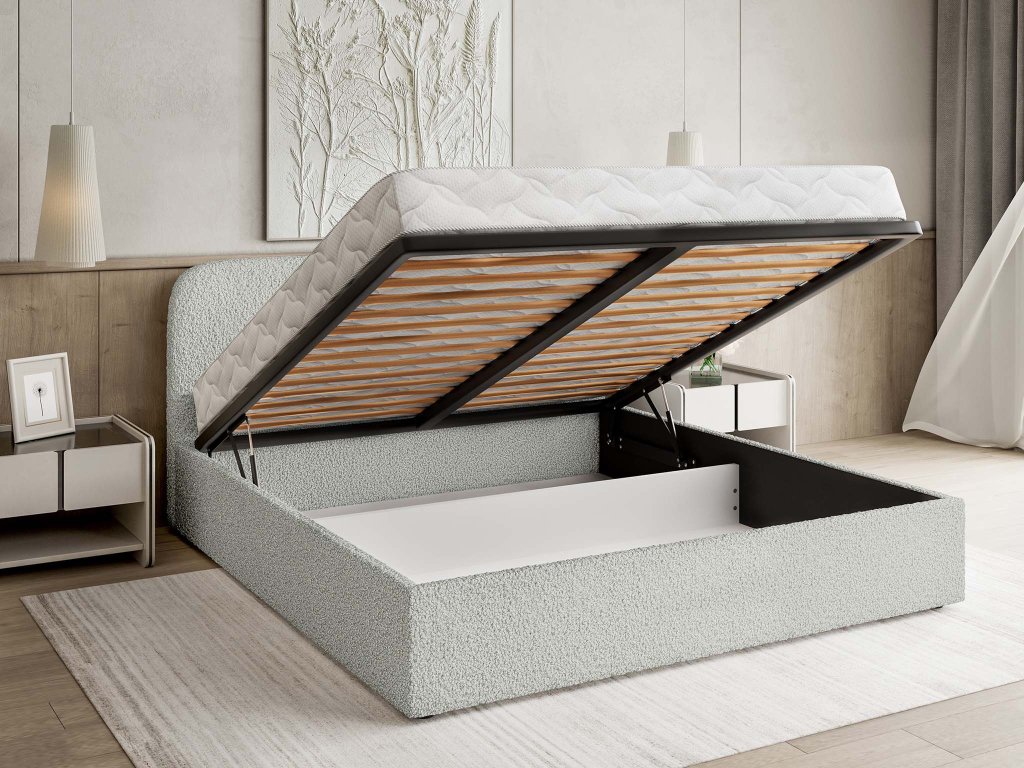 A kárpitozás Quelle szövetből készült, amely finom buklé „bárány” struktúrával és eredeti megjelenéssel rendelkezik. A világosszürke árnyalat friss hatást kelt, könnyen kombinálható más bútorokkal, és légies megjelenést kölcsönöz a térnek. Az anyag nemcsak esztétikailag vonzó, hanem rendkívül kopásálló is, így mindennapi használat mellett is megőrzi szép megjelenését. A Renive Q ágy ebben a változatban nagyszerű választás azok számára, akik az eleganciát megbízhatósággal szeretnék ötvözni, és olyan helyet teremteni, ahol öröm kezdeni és befejezni a napot.