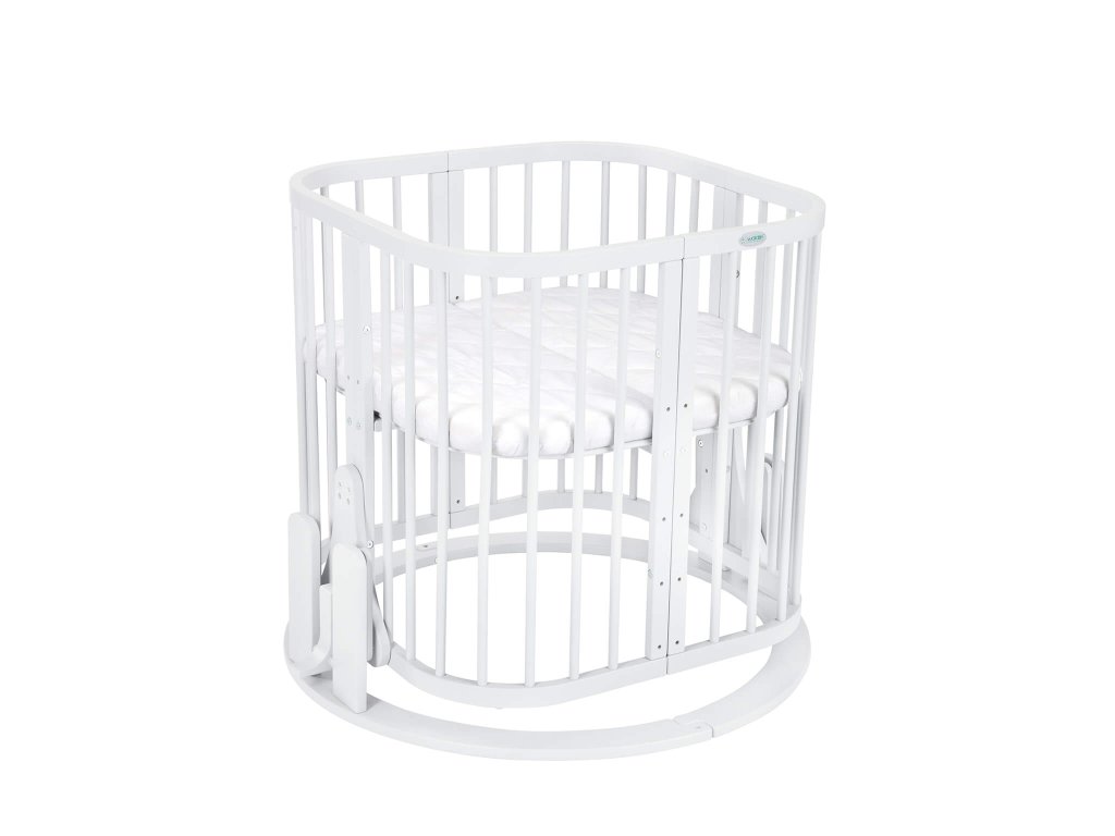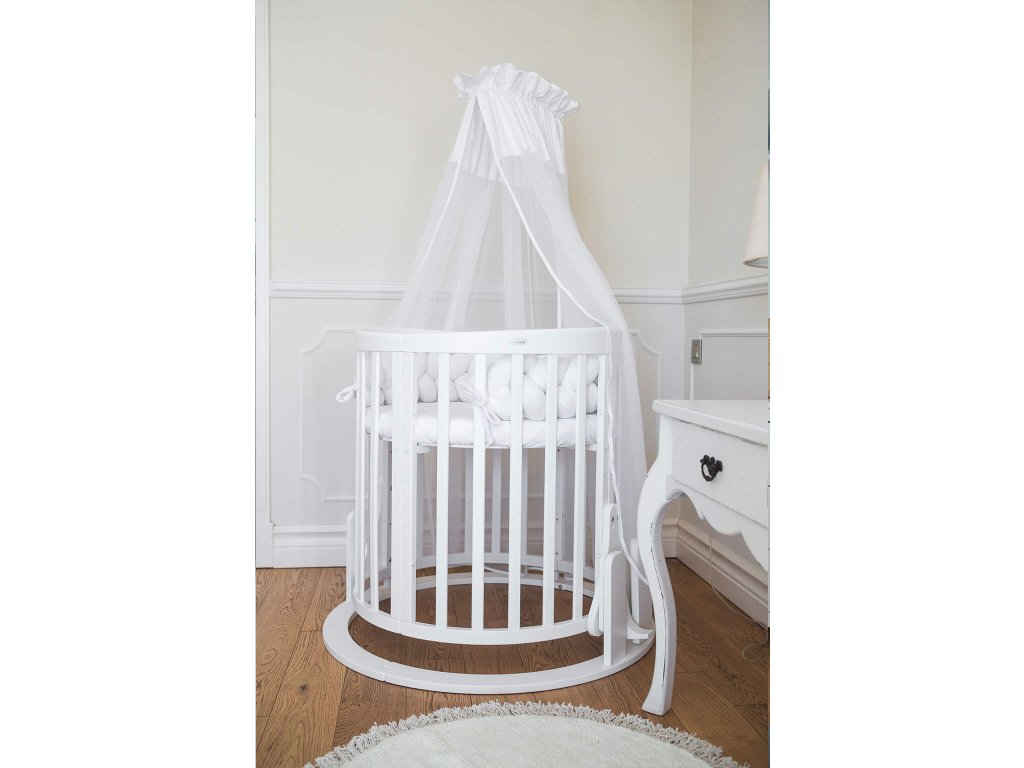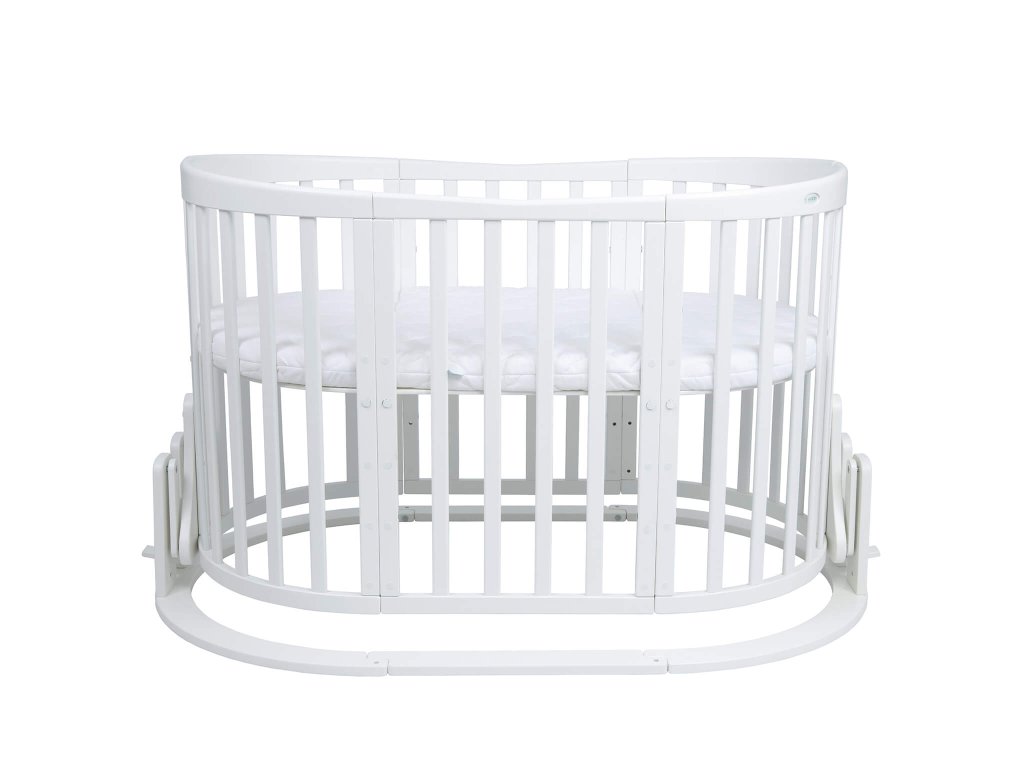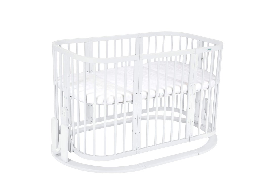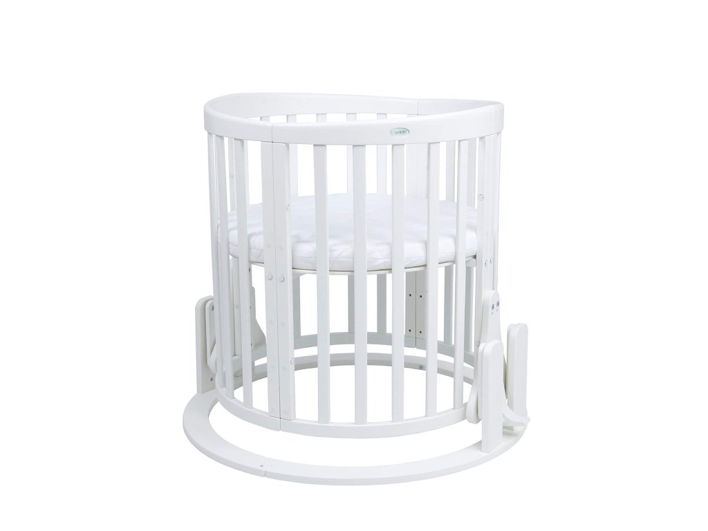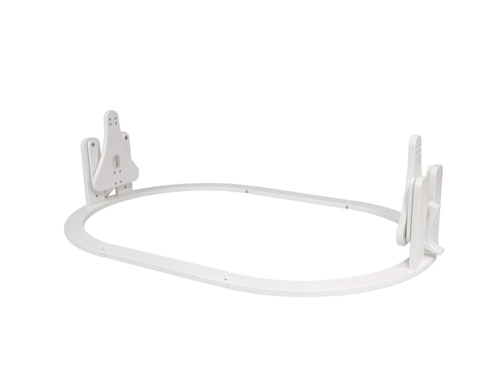 Fehér színű ringató állvány, amely egy igazán praktikus és elegáns kiegészítő a 7az1-ben kiságyakhoz. A ringató állványnak köszönhetően a babaágyat bölcsővé alakíthatja. A hintázó mechanizmussal ellátott szerkezet a klasszikus és az ovális növekvő kiságyra is felszerelhető. A felszerelés után a kiságyat elég egy kicsit meglökni és elkezd hintázni. A ringatást bármikor megállíthatja és bebiztosíthatja a kiságyat, hogy stabil állapotban tudja használni. A csomagolás tartalmazza a ringató állványt a kisebb és a nagyobb kiságyhoz is.