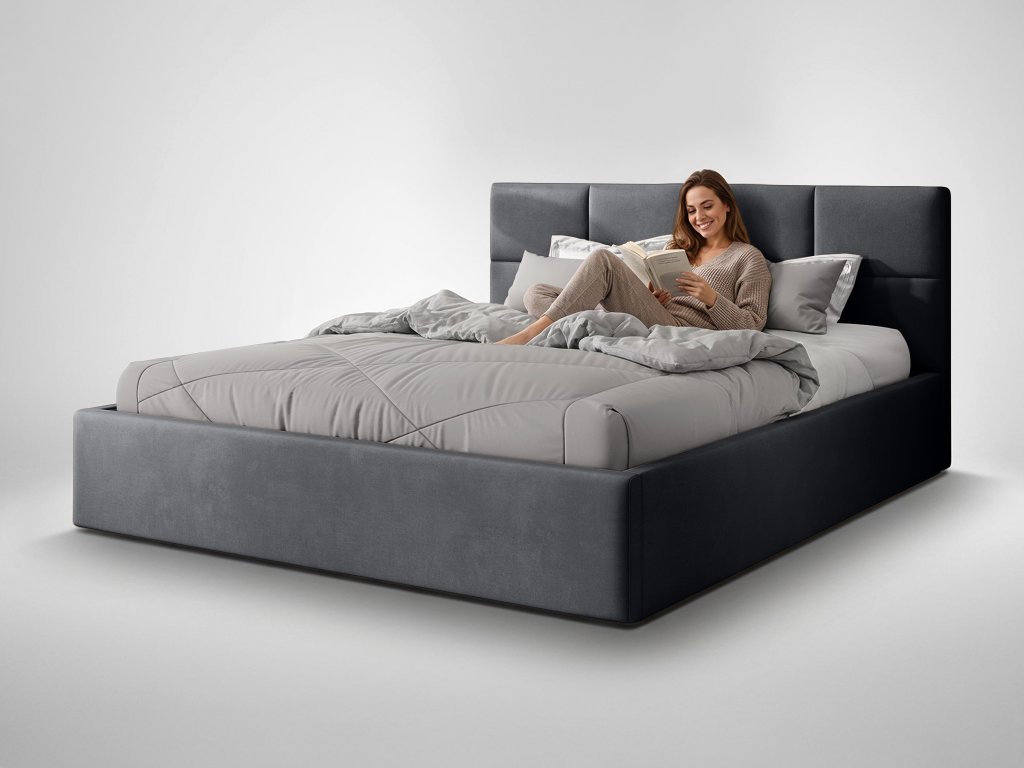 RINIMI Slim kárpitozott franciaágy ágyneműtartóval 140x200 - sötétszürke