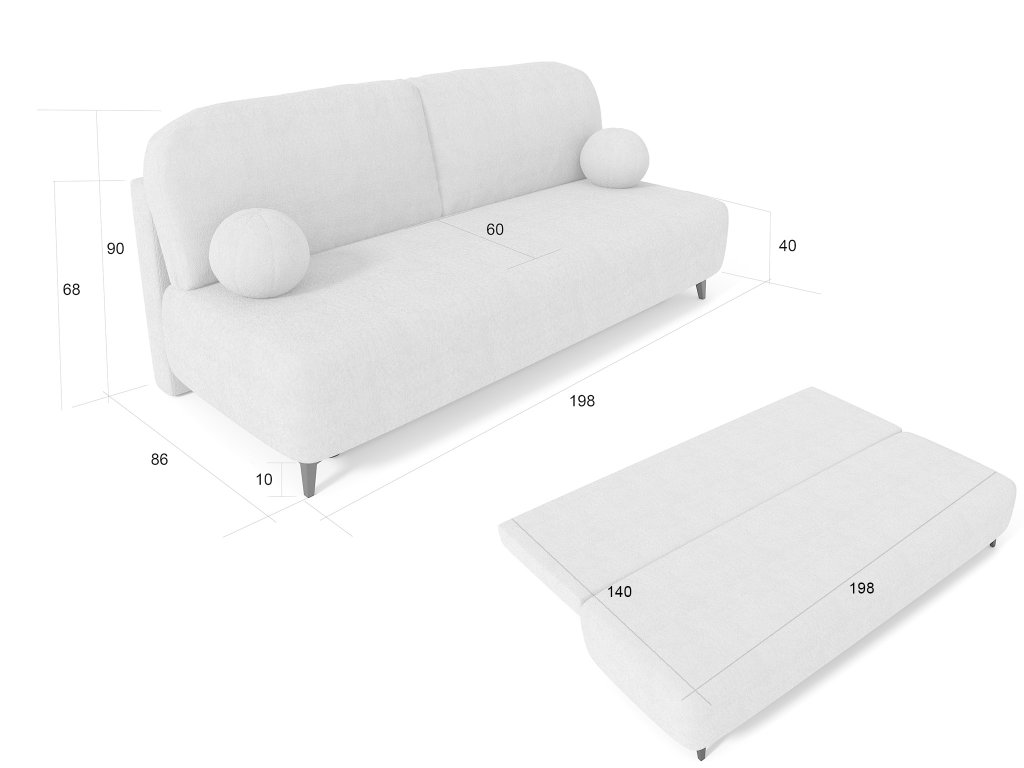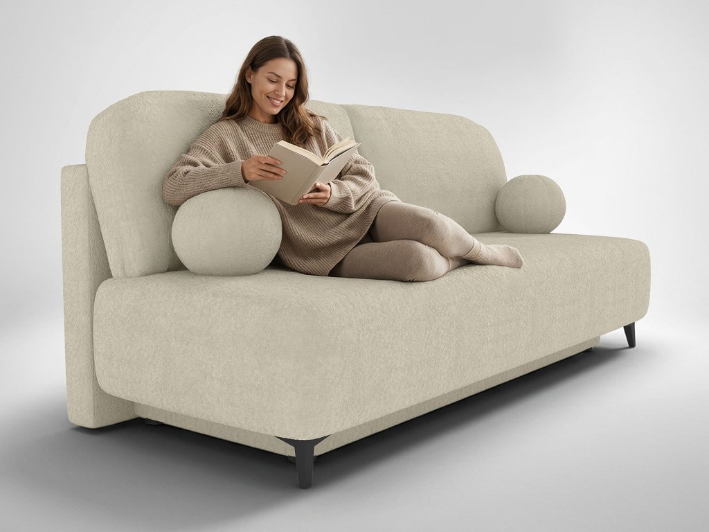 A Rio kanapéágyat letisztult vonalak és elegáns részletek határozzák meg. A fekete fém lábak modern karaktert kölcsönöznek a bútornak, míg a krémszínű Abriamo kárpitszövet elegáns és időtálló hatást kelt. Ez a strapabíró, hurkolt fonalból készült bouclé szövet ellenáll a kopásnak, a bolyhosodásnak és a kifakulásnak, így a modern, háromszemélyes kanapé mindennapi használat mellett is megőrzi esztétikus megjelenését. A Rio kanapé elegendő helyet biztosít a család és a vendégek kényelmes pihenéséhez, miközben a stílust, a komfortot és a funkcionalitást egyesíti. A RIO kihúzható kanapé nem csupán egy egyszerű ülőhelyet biztosít, de az ágyazható funkciójának köszönhetően egy kényelmes 140x198 cm fekhelyet is kap fele. Ez az ágyneműtartós kanapéágy így könnyen alkalmazkodik az Ön igényeihez. Egyszerű átalakítással kényelmes vendégággyá alakítható, a praktikus ágyneműtartó pedig elegendő helyet biztosít az ágynemű, a plédek, vagy a szezonális ruhák tárolására. Ideális választás olyan otthonokba, ahol fontos a tér hatékony kihasználása és a mindennapi praktikum.