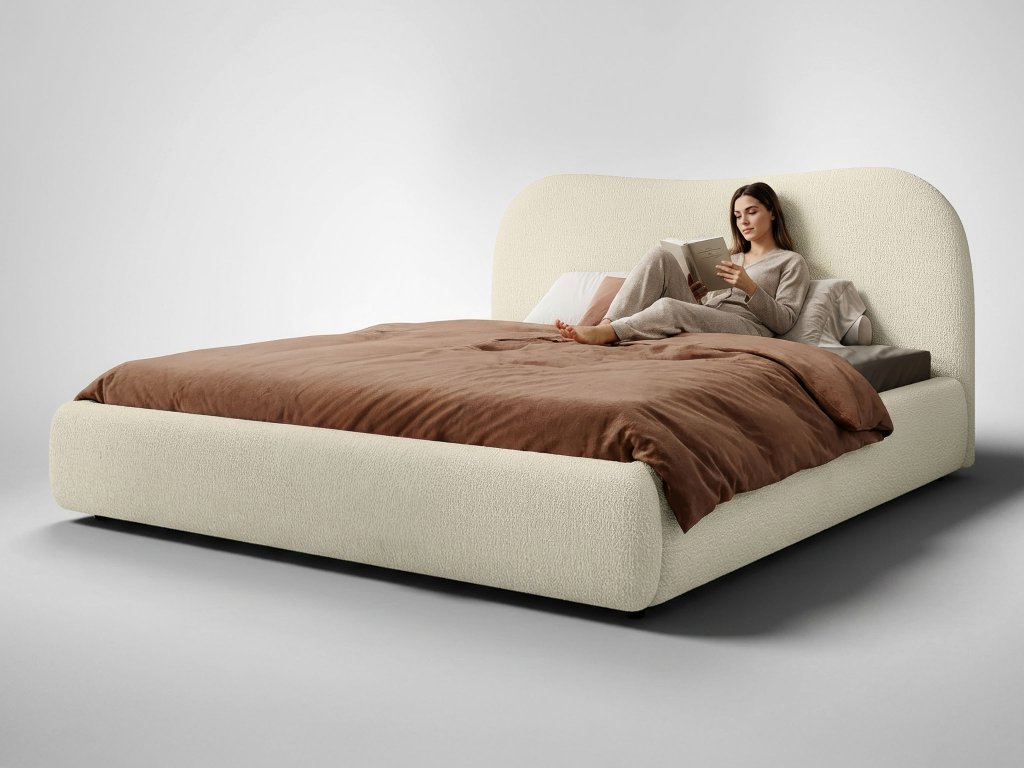 A Quelle szövet kárpitozás különleges buklé textúrájával hódít, amely a puha báránygyapjúra emlékeztet. A krémszín elegáns, időtálló megjelenést kölcsönöz, és optikailag lágyítja a tér hangulatát. A szövet kiváló kopásállóságával és kellemes tapintásával a szépséget és a praktikusságot ötvözi egyben. A Rosario ágy így a hálószoba központi elemévé válik, ahol a kényelem, a stílus és a részletek iránti érzék találkozik.