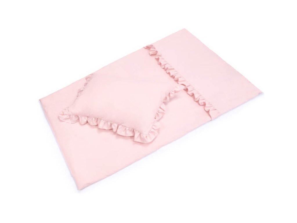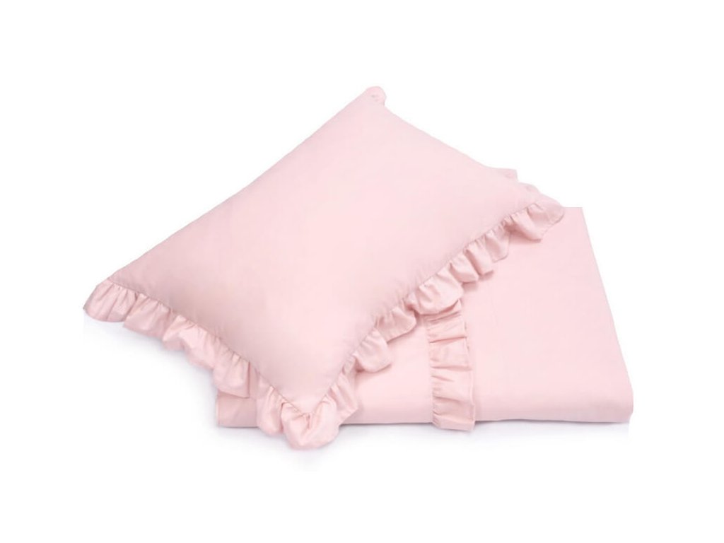 A rózsaszín fodros ágyneműhuzat egy paplan és egy párna huzatot tartalmaz.