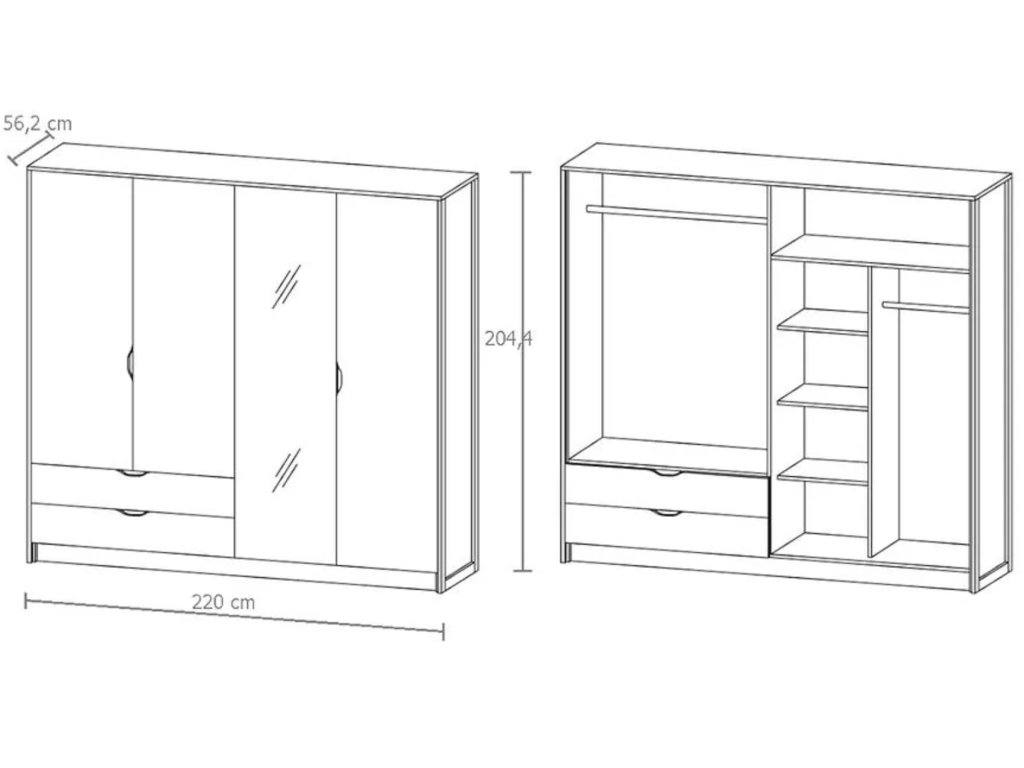 - Méretek (szxmxm): 220 x 204,4 x 56,2 cm
