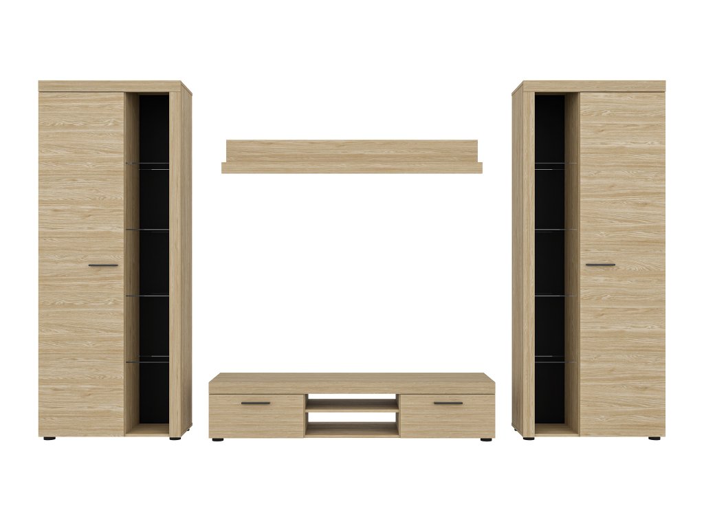 Ez a bútorszett a rejtett tárolóhely és a nyitott üvegezett zónák közötti egyensúly hangsúlyozásával készült. Az üvegpolcos vitrines szekrények modern csavart adnak az összeállításhoz, és lehetővé teszik porcelánok, szuvenírek vagy könyvgyűjtemények kreatív kiállítását úgy, hogy védve legyenek a portól, mégis szem előtt maradjanak. A bútor belső elrendezése hatékonyan tagolja a teret, míg a TV-állvány hosszú felső lapja könnyedén elbírja a nagyképernyős modern elektronikát. Az tölgy kivitelű Rumba nappali szekrénysor a funkcionális esztétika szinonimája, amely minden nappaliban eltöltött estét különleges élménnyé varázsol.