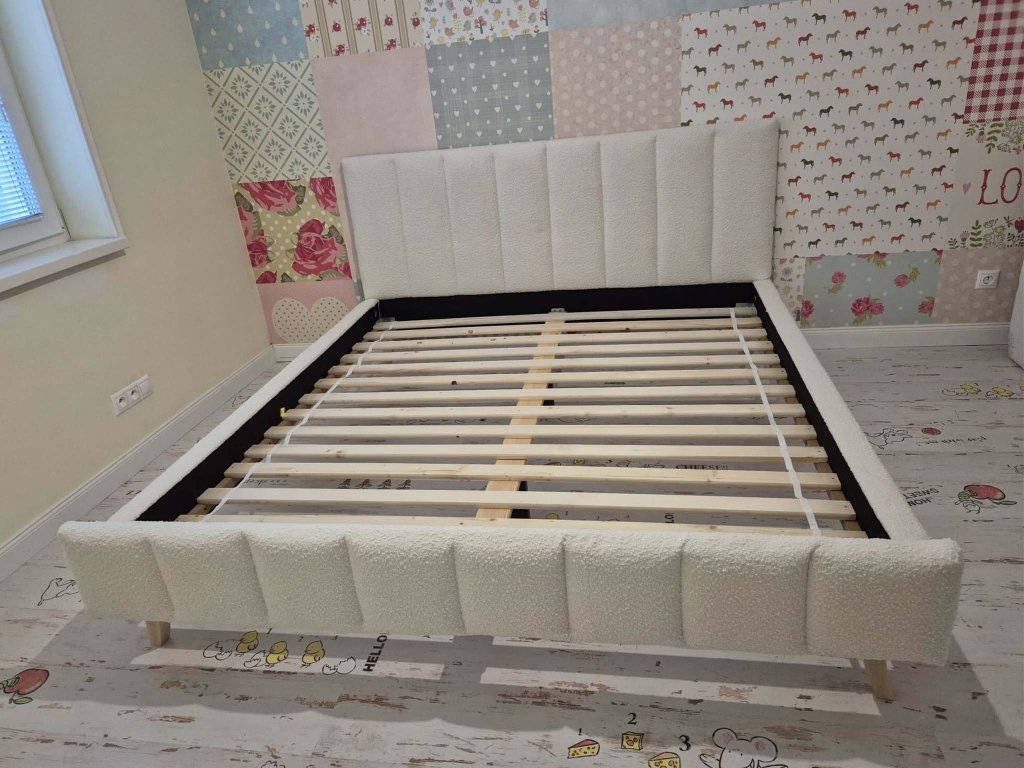 - Anyaga: MDF / Bouclé szövet / fa lábak