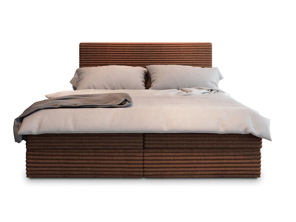 A téglavörös Samana boxspring ágy 140x200 cm nem csak a gyönyörű színével hívja fel magára a figyelmet, de a praktikus funkcióival is. Méretének köszönhetően azonban nem csak a hálószobába, de a vendégszobába vagy kamaszok szobájába is megfelelő lehet. Az ágy ötvözi a modern design a praktikus funkciókkal. Stabil, tömör fa és bútorlap kombinációjában készült vázzal rendelkezik, amelyek garantálják a stabilitását és a hosszú élettartamát. Az egyszerű összeszerelését garantálják a precíz fém összekötések, amelyek időt és energiát takarítanak meg. Az ágyhoz közepes keménységű Bonell rugós matracok tartoznak. Ezek a matracok rugalmas T30-as hab és 2,4 cm vastag bonell rugók kombinációjában készülnek.