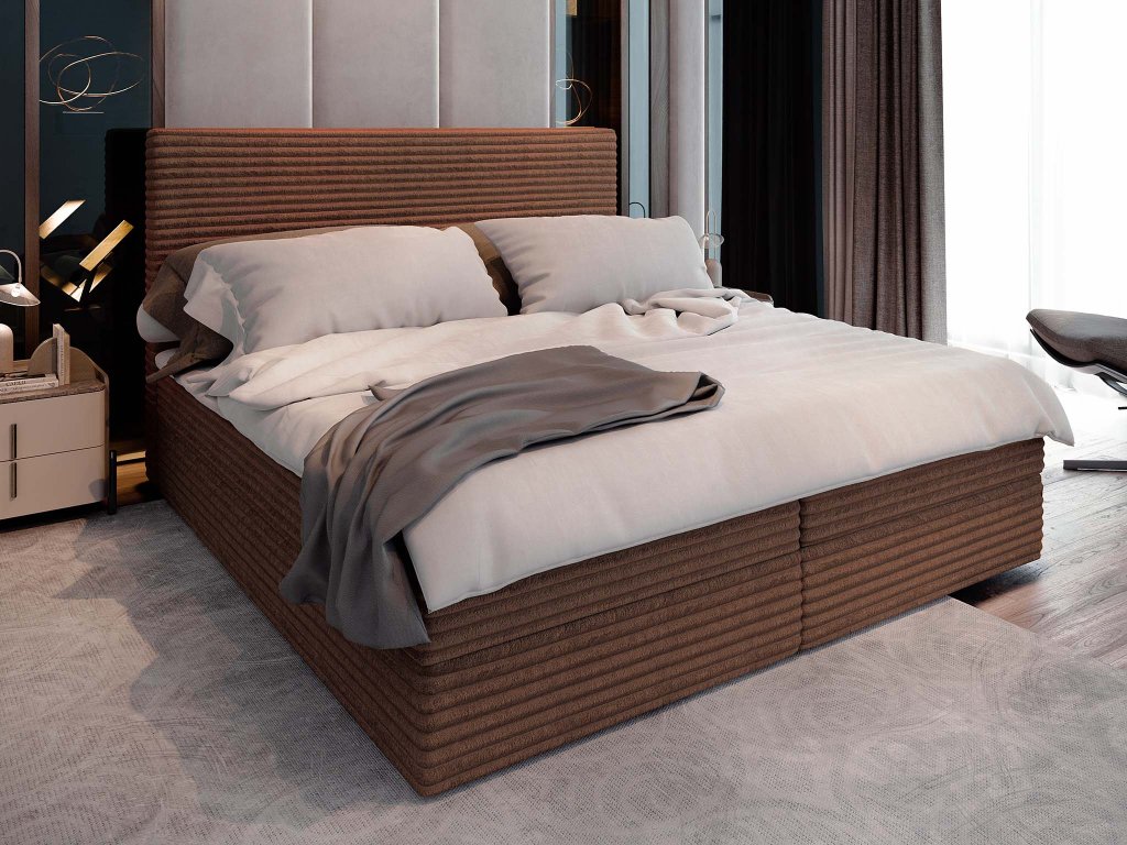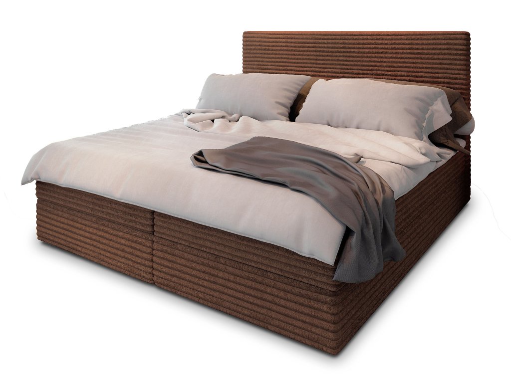 Samana téglavörös boxspring ágy 180x200 cm, amely egy modern, minőségi és gyönyörű kárpitozott franciaágy. Az ágyhoz közepes keménységű Bonell rugós matracok tartoznak. Ezek a matracok rugalmas T30-as hab és 2,4 cm vastag bonell rugók kombinációjában készülnek. Stabil, tömör fa és bútorlap kombinációjában készült vázzal rendelkezik, amelyek garantálják a stabilitását és a hosszú élettartamát. Méretének köszönhetően azonban nem csak a hálószobába, de a vendégszobába vagy szállodákba, panziókba is megfelelő lehet. Az ágy ötvözi a modern design a praktikus funkciókkal. Az egyszerű összeszerelését garantálják a precíz fém összekötő elemek, amelyek időt és energiát takarítanak meg.