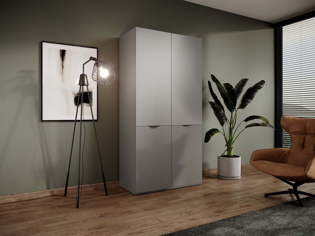 Vigyen otthonába új színt a szürke Sandbox Nova 100 moduláris szekrény segítségével. Ez az elegáns szürke színű nyílóajtós gardróbszekrény kiváló minőségű 1,6 cm vastag laminált bútorlapból készült, míg az ajtó alsó, marott része, 1,8 cm vastag, ami egyedi és attraktív megjelenést kölcsönöz a bútornak.