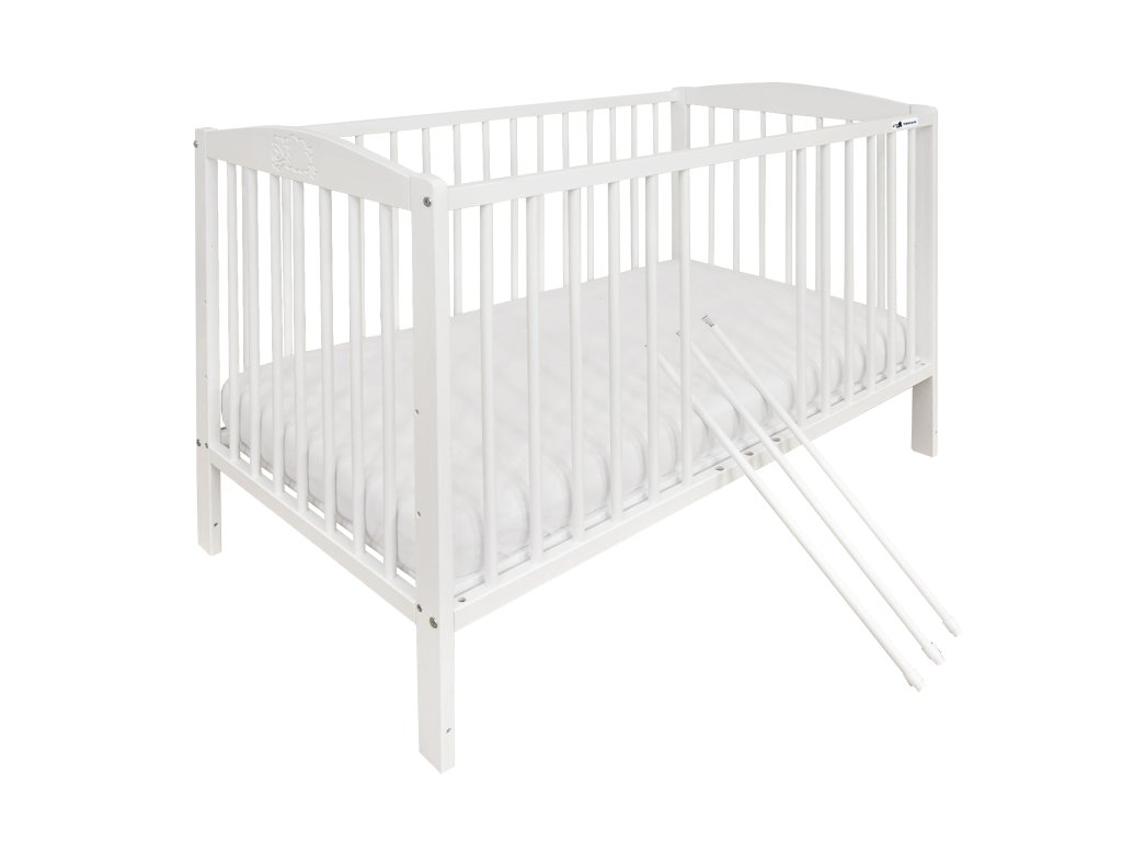 Minőségi borovi fenyőből készült SANY kiságy 60 x 120 cm, amely fehér színben készül. A babaágy nagyon stabil és strapabíró szerkezettel rendelkezik. Nagy előnye, hogy a magassága három magassági fokozatban állítható (24, 38, 53 cm). Továbbá három kivehető ráccsal is rendelkezik. A kiságy ágyrácsa natúr színben készül. A kisággyal biztosan elégedett lesz Ön és kisbabája is.