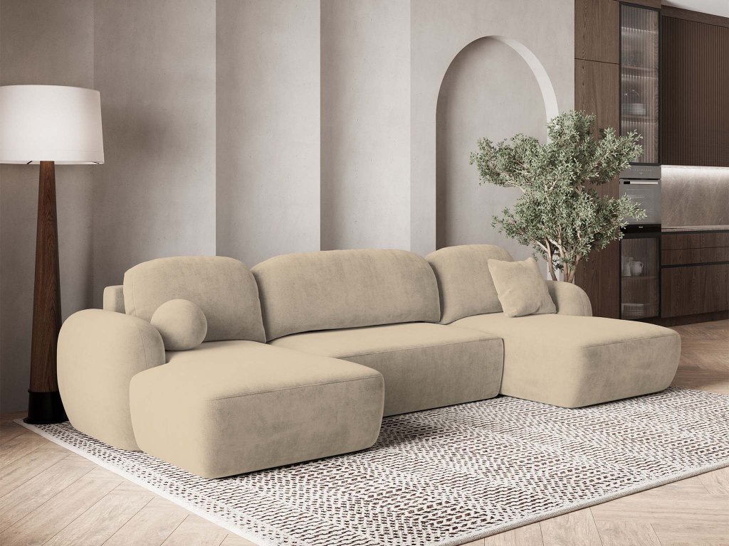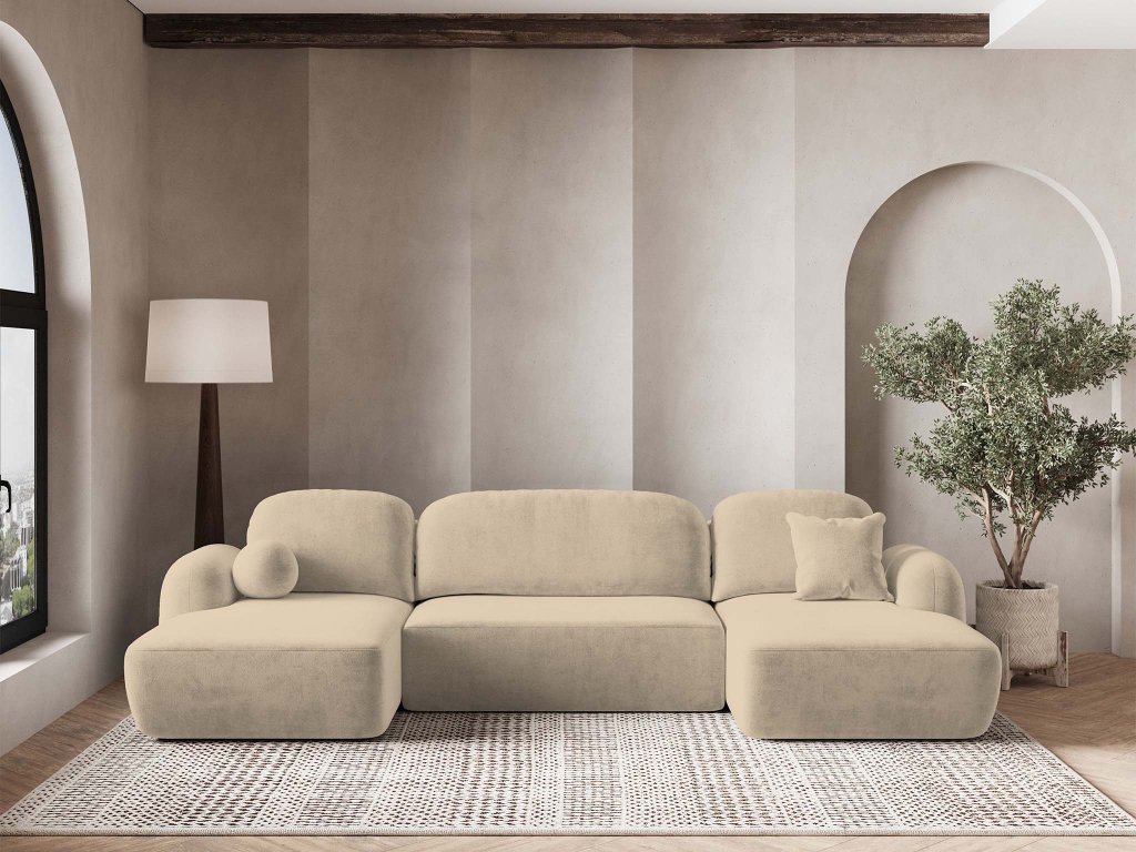 A SAVONA K ágyazható U alakú sarokkanapé elegáns krémszínű változatban igazán luxusos kinézettel rendelkezik. Bársonyos Paros szövettel kárpitozott, amely egy minőségi és puha kárpitszövet. Az U alakú kialakításának köszönhetően elegendő helyet biztosít a családnak és az érkező vendégeknek is. A bársonyos felszíne nagyon kényelmes, puha és kellemes. Robusztus szerkezete forgácslapból és rétegelt falemezből készült, hullámrugókkal és PUR habbal kiegészülve.