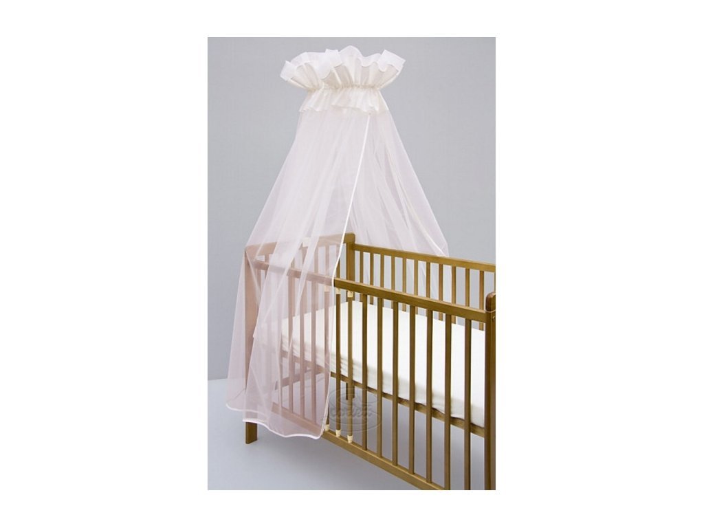 Univerzális SCARLETT bézs színű baldachin a 60x120 cm és a 70x140 cm kiságyak fölé. A baldachin a kiságy fölé és a kiságy oldalára is felszerelhető. A baldachin tüllből és pamutból készül. A baldachinhoz nem tartozik baldachin tartó, azonban kínálatunkból megvásárolható.