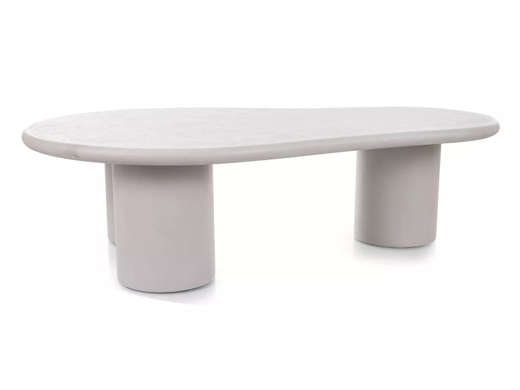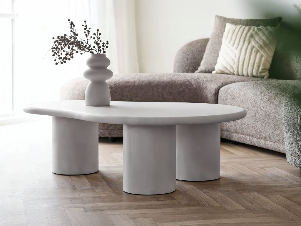 Masszív, hengeres lábai stabilitást és egyedi karaktert kölcsönöznek a bútordarabnak. A dohányzóasztal minőségi mikrocementből készült, amely egyszerre hordozza az építészeti beton nyers karakterét és a lágy ívek kifinomult eleganciáját. Világosszürke színe könnyedséget és visszafogott eleganciát ad a szobának, így könnyedén beillik bármilyen stílusú otthonba, legyen az minimalizmusta, elegáns vagy modern.