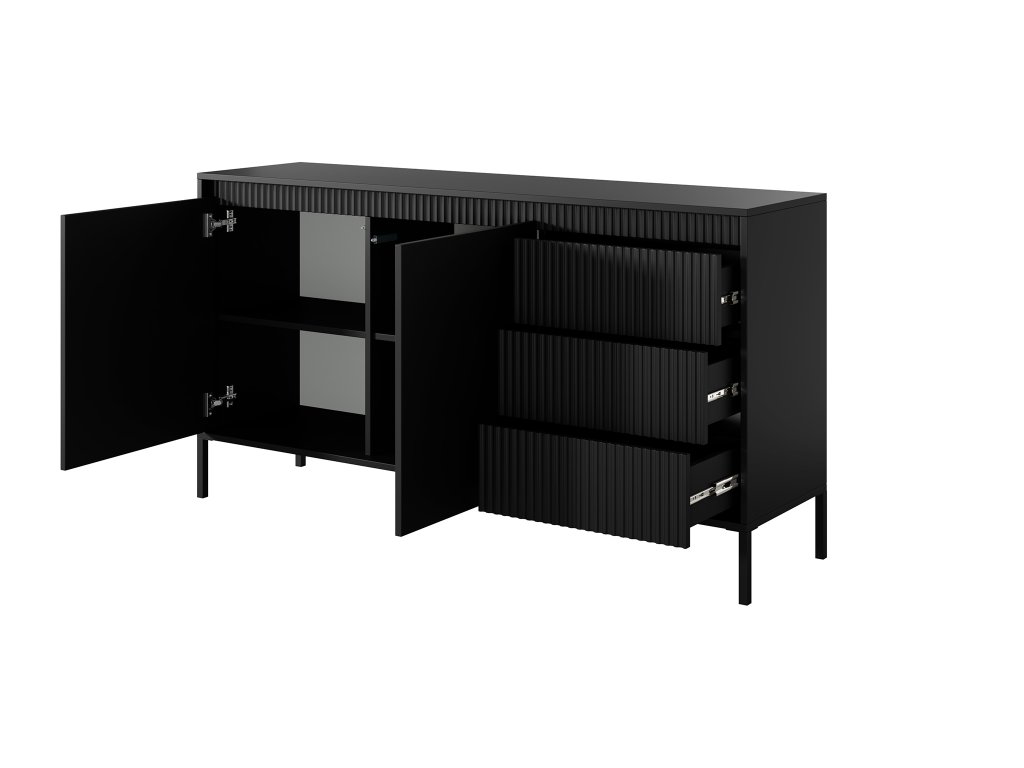 A stílusos SENSO B153 komód a szélességének köszönhetően számos tároló hellyel rendelkezik a kétajtós szekrénynek és a három fióknak köszönhetően. A fiókok lágy 3D-s martott mintával díszítettek, amely igazán modern hatást kelt. A fogantyú nélküli rendszernek köszönhetően nem rendelkezik fogantyúkkal, így egy igazi letisztult stílusú bútordarabot kap. A kétajtós szekrény egy-egy polcot rejt.