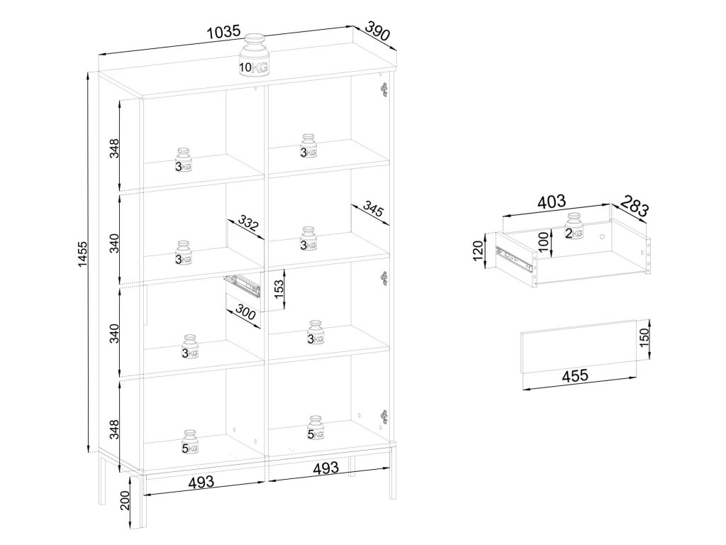 - Anyaga: laminált 16 mm vastag bútorlap 0,5 mm ABS élzárással / MDF / edzett üveg / fém lábak