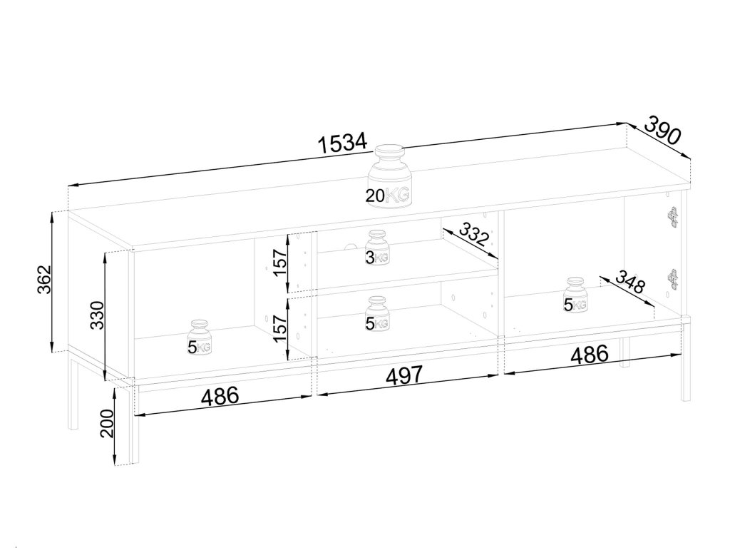 Méret (SzéxMaxMé): 104 x 83 x 39 cm - SENTO RTV154 tévés szekrény - stabil és széles tévés asztal, amely nagyobb tévéknek is helyet biztosít.