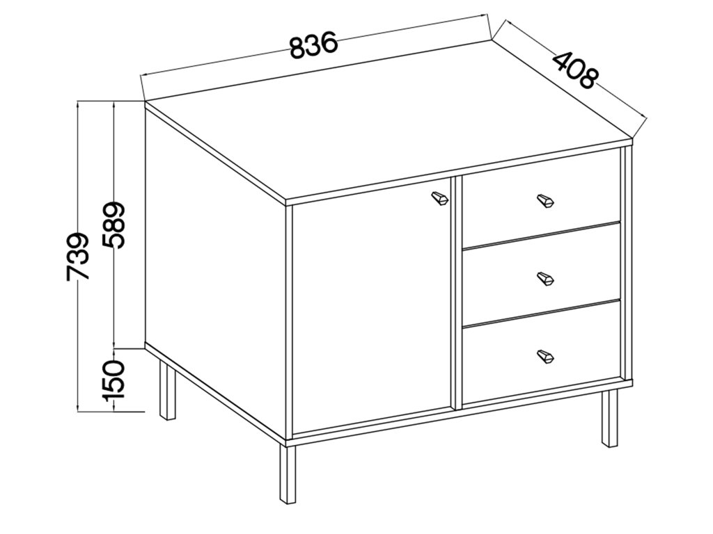 SERENA II 814 komód, amely egy igazán praktikus bútordarab minden nappaliba vagy ebédlőbe. Minőségi anyagokból készült, amely garantálja a hosszú élettartamát. A komód egy egyajtós szekrénnyel és három praktikus fiókkal is rendelkezik, amelyek számos dokumentumnak, ruhának vagy egyéb tárgynak biztosíthatnak helyet.