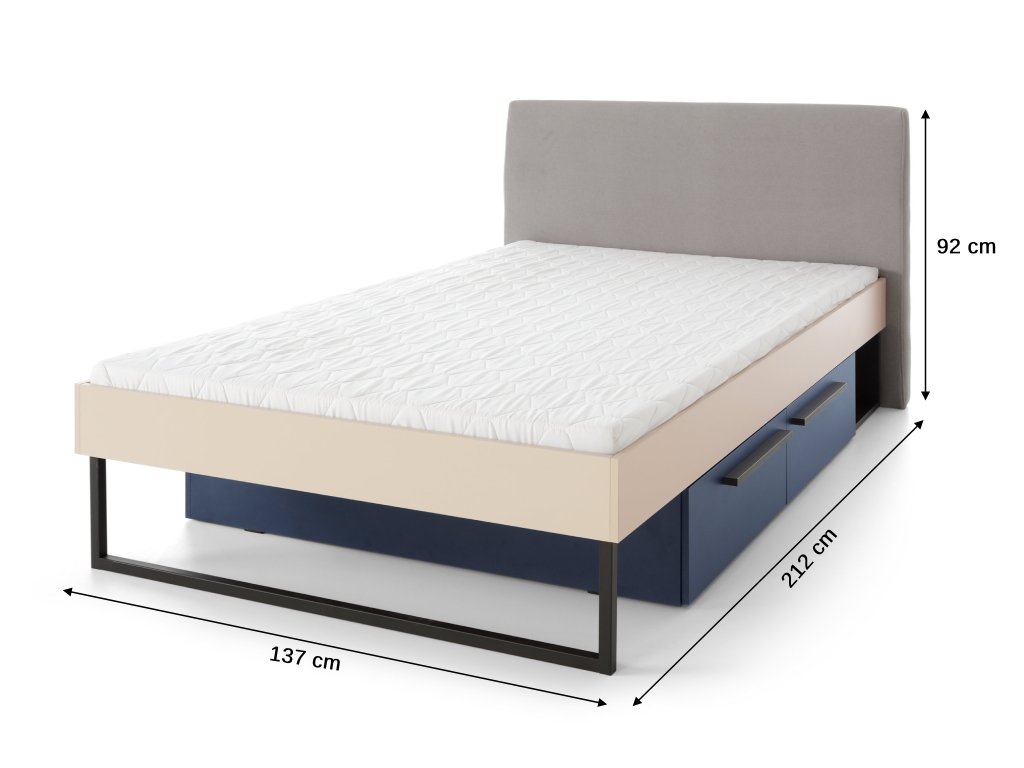 Gyönyörű és modern stílusú SERGIO S13 egyszemélyes bézs ágy 120x200 cm szürke kárpitozott ágytámlával, amely a gyerekszobába vagy az ifjúsági szobába is tökéletes választás. Az ágy minőségi laminált 16 mm vastag laminált forgácslapból készült. Az élei ABS furnérral biztosítottak. Az ágy részét képezi az ágyrács és az ágyneműtartó tároló fiókok is. Az összeszerelés előtt eldöntheti, hogy jobb vagy bal oldalra szeretné az ágyneműtartókat.