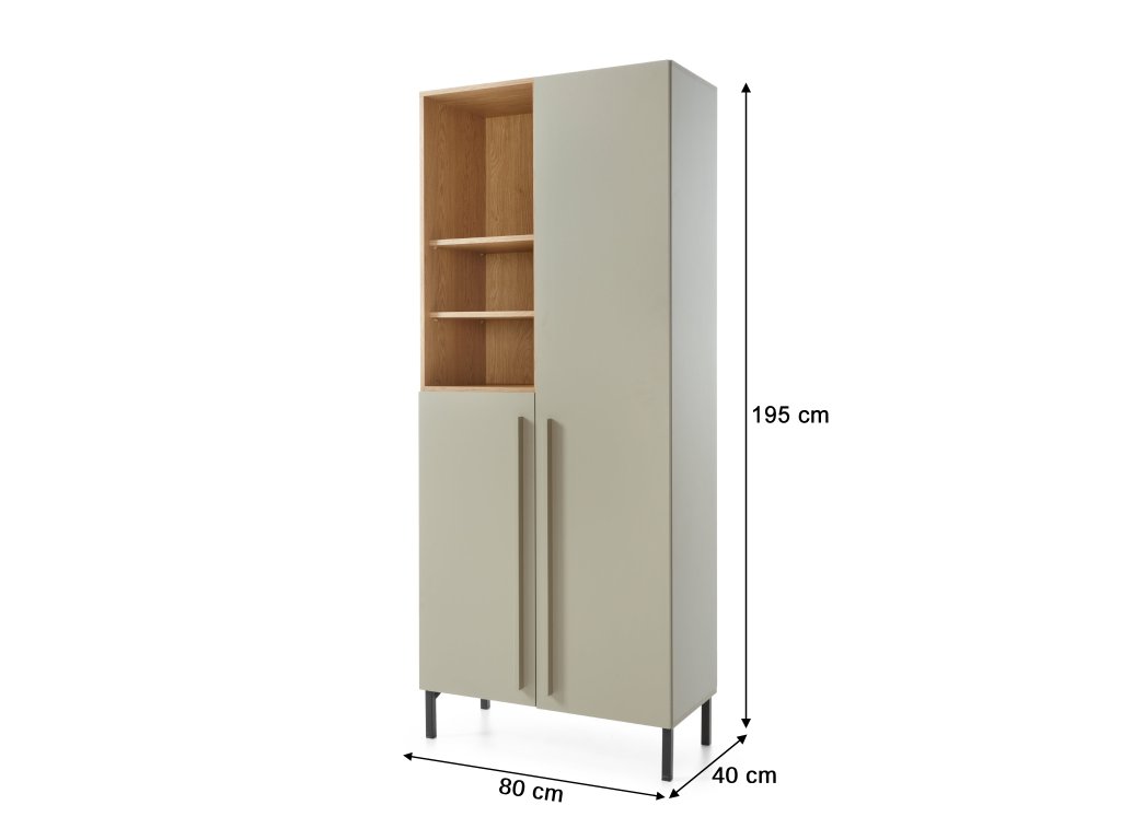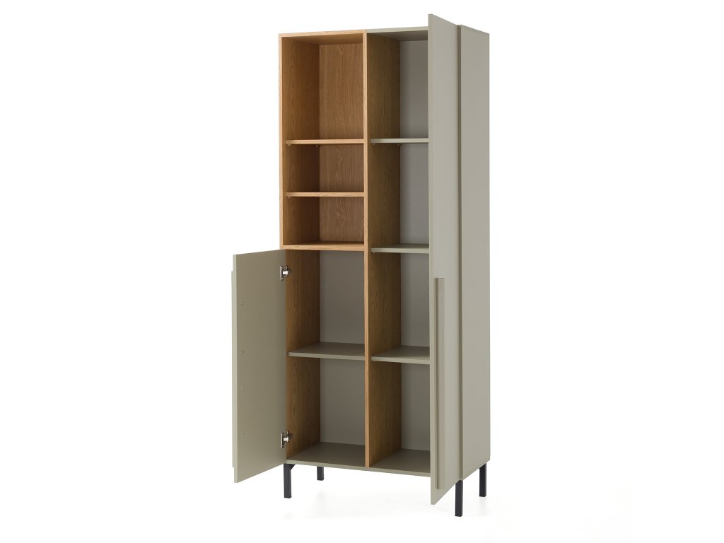 SERGIO S3 kétajtós zöld szekrény nyitott polcokkal. Gyönyörű színkombinációban készült, zöld és balti tölgy színekben, amelyek igazán remekül mutatnak együtt. A szekrény tökéletes a ruhák, az iskolai kellékek vagy a könyvek tárolására is. Hosszú vékony fogantyúi pedig még jobban növelik modernitását.
