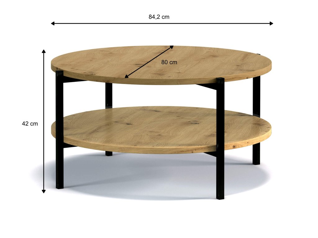 Amennyiben minőségi dohányzóasztalt keres, már nem kell tovább keresgélnie. A SIGMA B dohányzóasztal igazán elegáns fekete és arany tölgy szín kombinációjában készül. Tökéletes választás minden otthonba vagy irodába. Választhatja a nappaliba, az irodába vagy a dolgozószobába is. A kerek asztallap 22 mm vastag forgácslapból készült, amely igazán robusztus és hosszú élettartamú. Az asztal két ilyen asztallappal is rendelkezik, így az asztal még nagyobb stabilitással rendelkezik. Az alsó asztallap tökéletes polcként szolgál, amelyre elhelyezheti az újságokat, az éppen olvasott könyvét vagy a távirányítókat. Az artisan tölgy színének köszönhetően igazán szofisztikált és stílusos megjelenéssel rendelkezik. Ennek köszönhetően tökéletes választás a modern otthonokba. A dohányzóasztal stabilitását a fekete fém lábai biztosítják, amelyek nem csak stabilak, de esztétikailag is kellemesek. Ez a modern kerek asztal igazán designos, ráadásul minőségi anyagokból készült és praktikus tulajdonságokkal rendelkezik, melyeknek köszönhetően biztosan mindenki figyelmét felkelti majd. Az asztal szélei ABS élzárással vannak biztosítva, mely megvédi az asztalt a mechanikus sérülésektől és az asztal széleinek esetleges csorbulásától. Amennyiben egy megbízható és szép kerek asztalt keres, megtalálta az igazit!