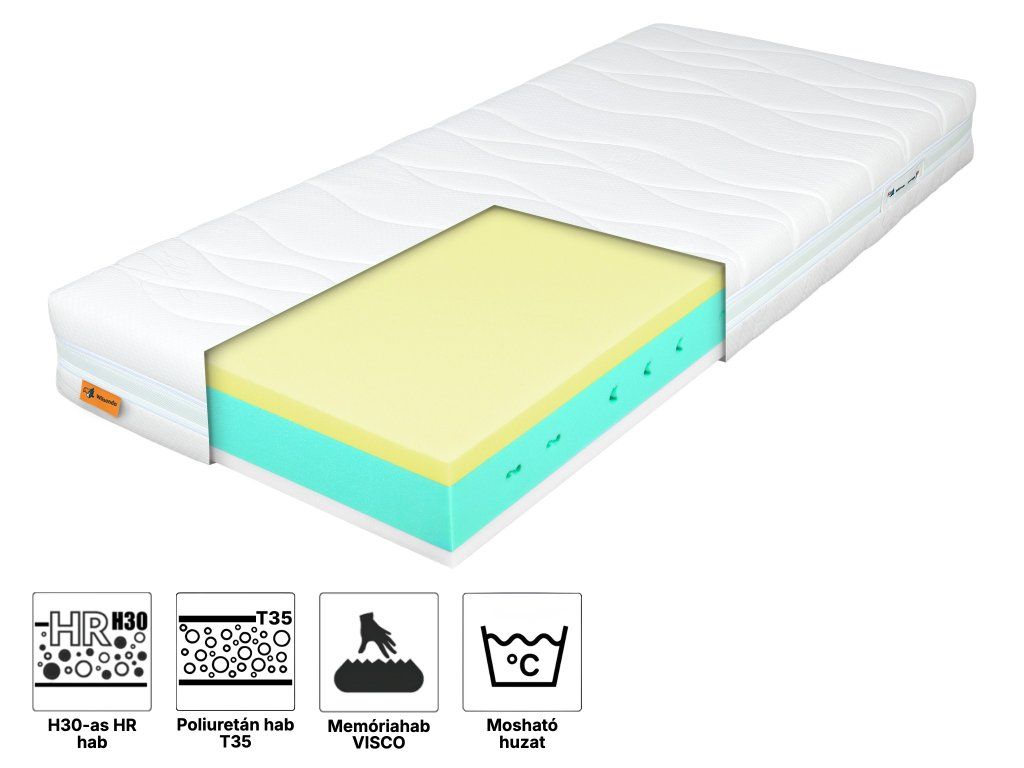 Anyagösszetétel: Emlékező hab VISCO, PUR hab T35, HR hab H30, huzat